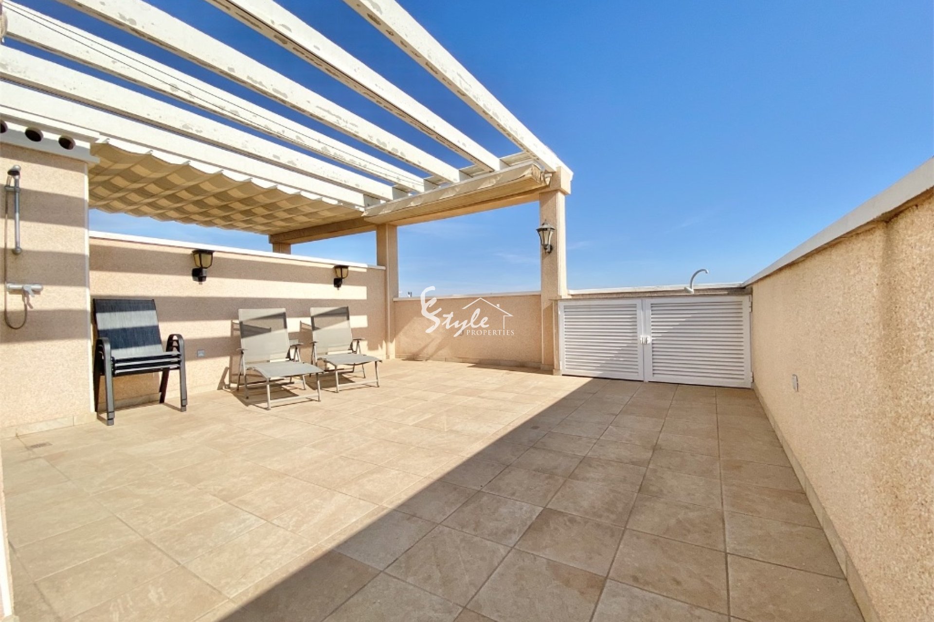 Ofrecemos a la venta esta propiedad en perfecto estado con solarium privado, con sol o sombra garantizada todo el día. La propiedad se encuentra en Vista Azul, Punta Prima con proximidad a todos los servicios posibles.