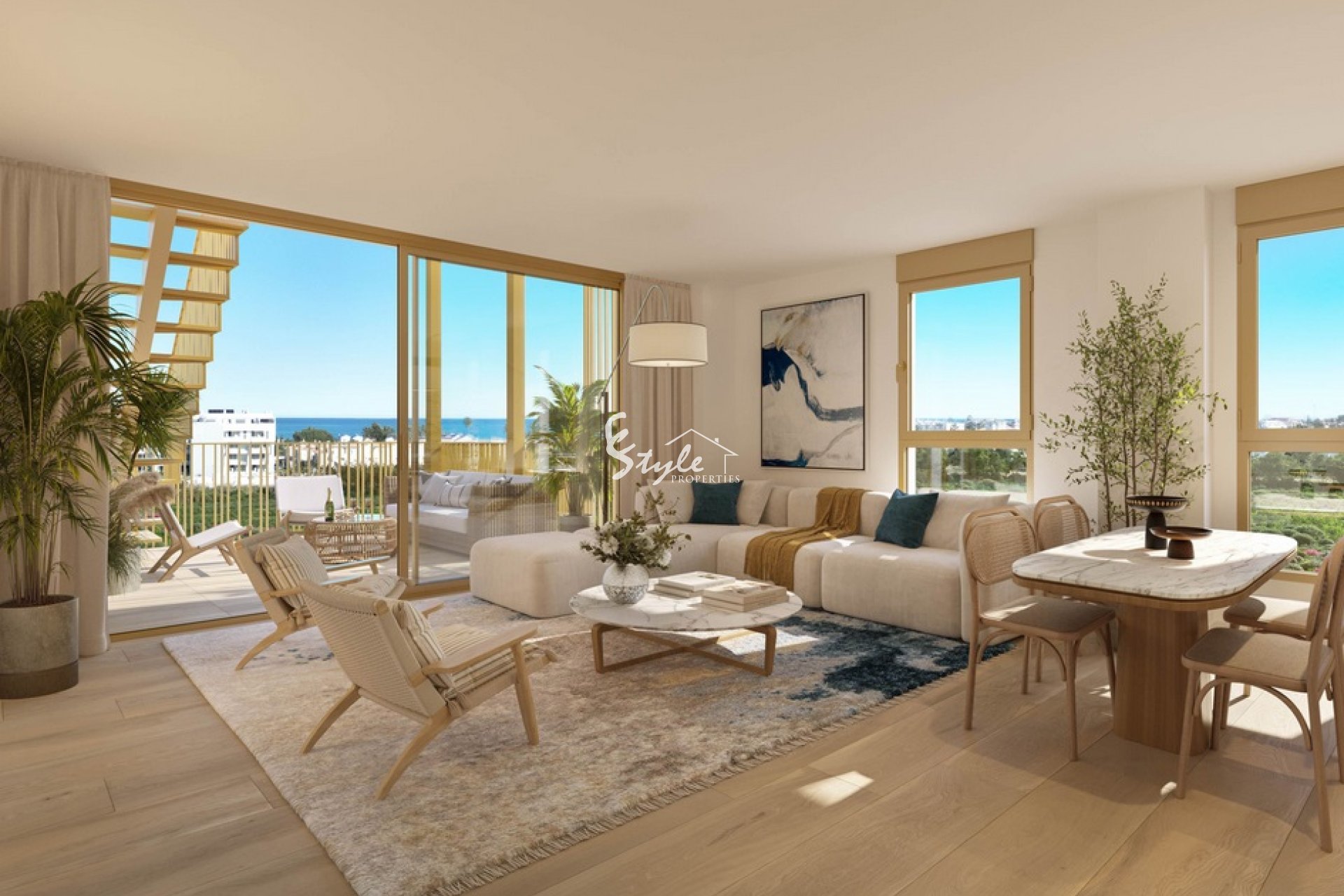 Apartamentos nuevos en un complejo residencial a sólo 400 metros de la playa. Apartamentos de 2 o 3 dormitorios, 2 baños, salón y cocina. Los apartamentos son muy modernos, tienen suelo radiante en los baños, armarios empotrados en los dormitorios. El edificio también cuenta con piscina y aparcamiento.