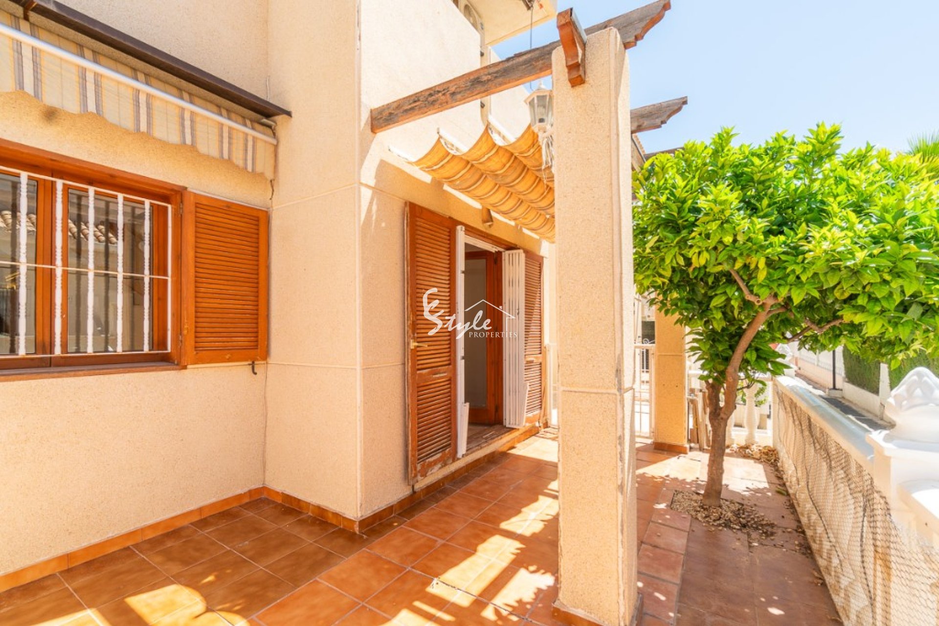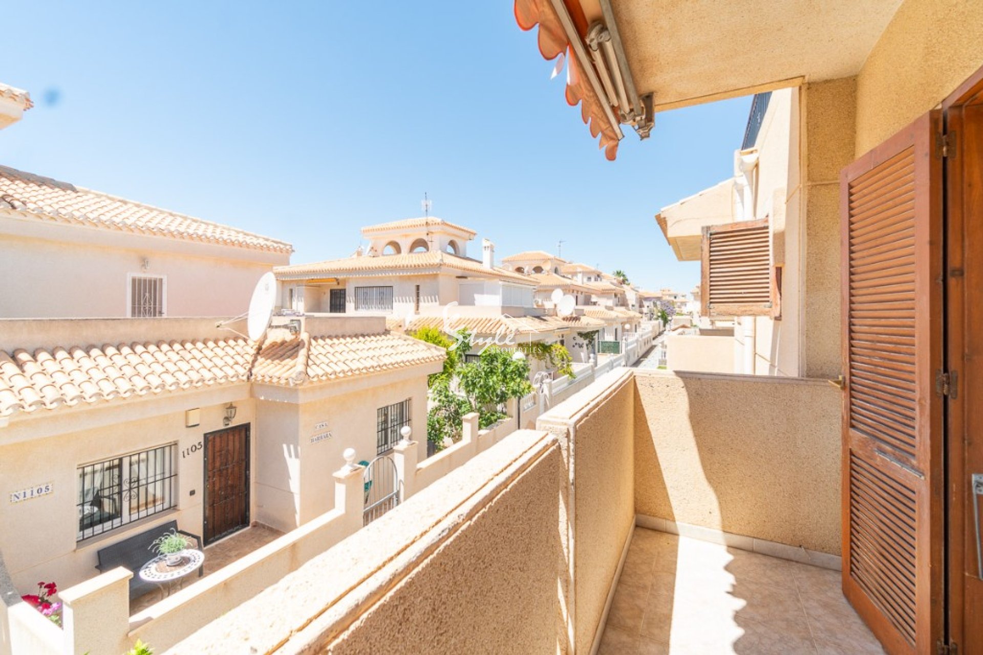Disponemos en venta un adosado en el Residencial en la Playa Flamenca, Torrevieja. Esta casa totalmente preparada para entrar a vivir. Tiene construidos 100 m2 con porche. La vivienda consta de 2 dormitorios con armarios empotrados, 2 baños, cocina, salón-comedor y terraza. Está situado a un kilómetro del mar y próximo a gran cantidad de servicios. El dúplex originariamente contaba con 3 dormitorios, pero en su día se transformó el dormitorio de la planta baja en la cocina independiente anteriormente mencionada y, por tanto, aunque ahora tenga solamente 2 dormitorios, el tamaño de casi 90 m2 se corresponde con una vivienda mayor, por lo que el salón-comedor es bastante más grande de lo habitual en este tipo de viviendas. La propiedad cuenta también con calefacción radial bajo el suelo para las escasas semanas de frío invernal en nuestra zona.