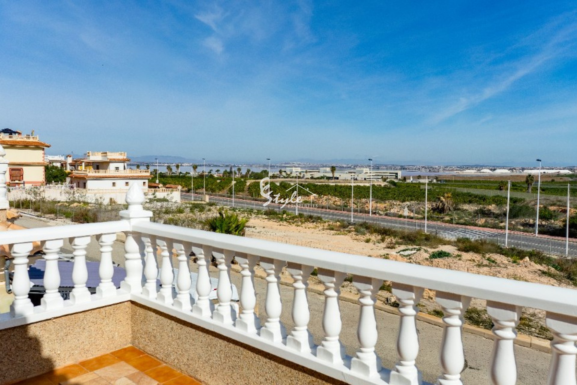 On the second level there are 2 sunny bedrooms, one bathroom and huge balcony, from where you can enjoy a magnificent open views - from one side you see the Pink lake of Torrevieja, and from other you have a sea view.