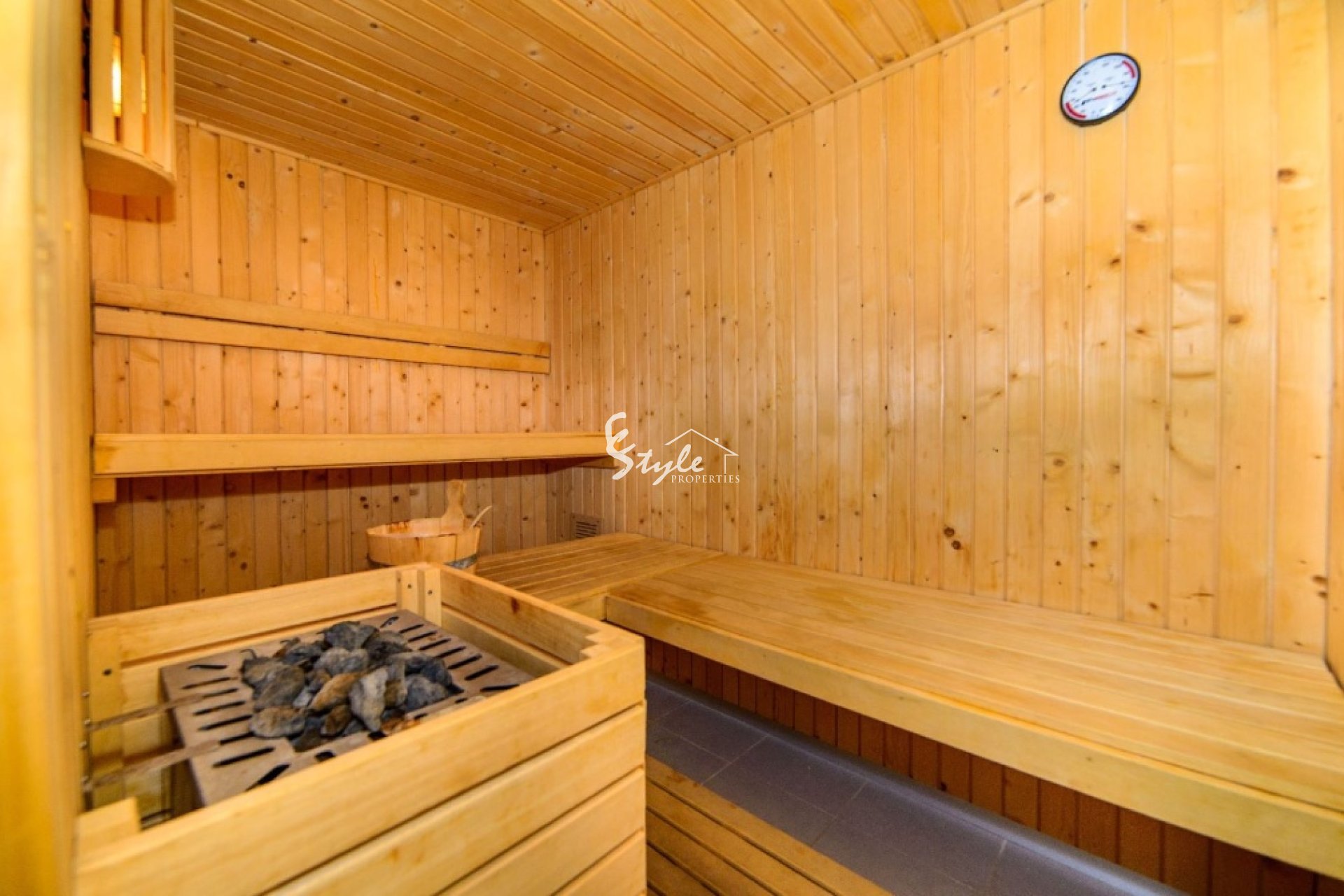 Apartment for sale is situated on the 7th floor of a front-line complex in Punta Prima with swimming pools including heated one, gym, sauna, children's playground and chill out area.