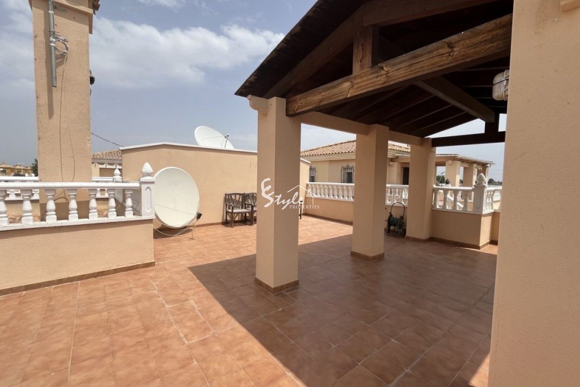 This traditional Mediterranean style country villa situated on a plot of 225 m2 and has views of the countryside of Almoradi, Alicante. This property has 2 bedrooms and bathroom, open terrace, private solarium with magnificent unobstructed views, kitchen which is fully equipped, and also there is a car port, garage and shed for storage. Outside you will enjoy a large private pool and BBQ area. The garden area has excellent exterior. Enjoy the atmosphere day or night complete with barbecue area.