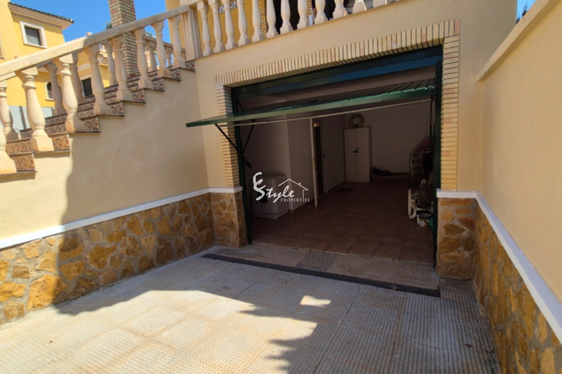 The villa also boasts a large garage, offering ample storage space or parking for multiple vehicles, with additional potential for a workshop or hobby area.