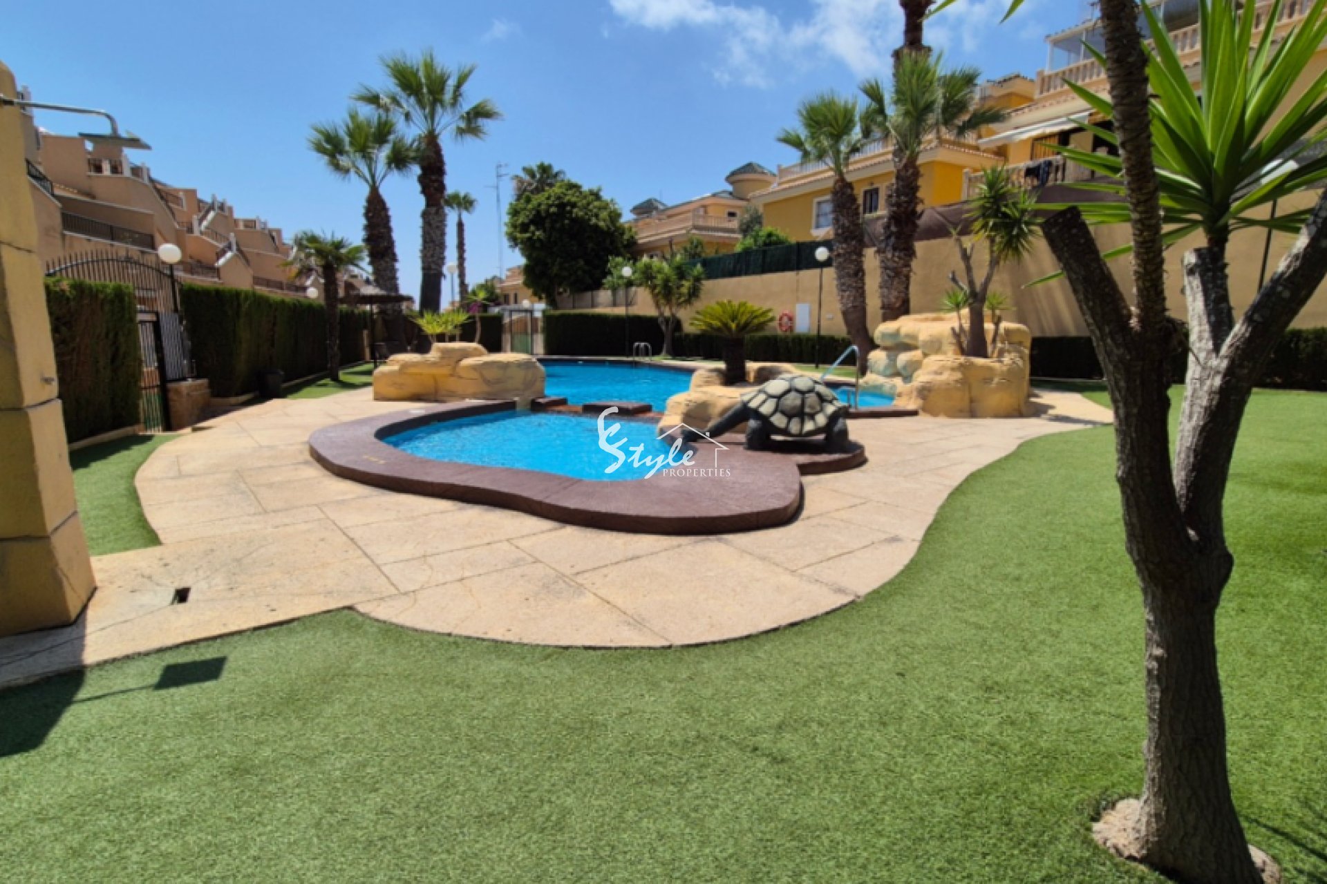 Enjoy the sunshine all day long from the private swimming pool, set within a beautifully landscaped garden that provides plenty of space for outdoor living, entertaining, and relaxation. In addition to the private pool, residents also benefit from access to a well-maintained communal pool, perfect for socializing or cooling off in a larger setting.