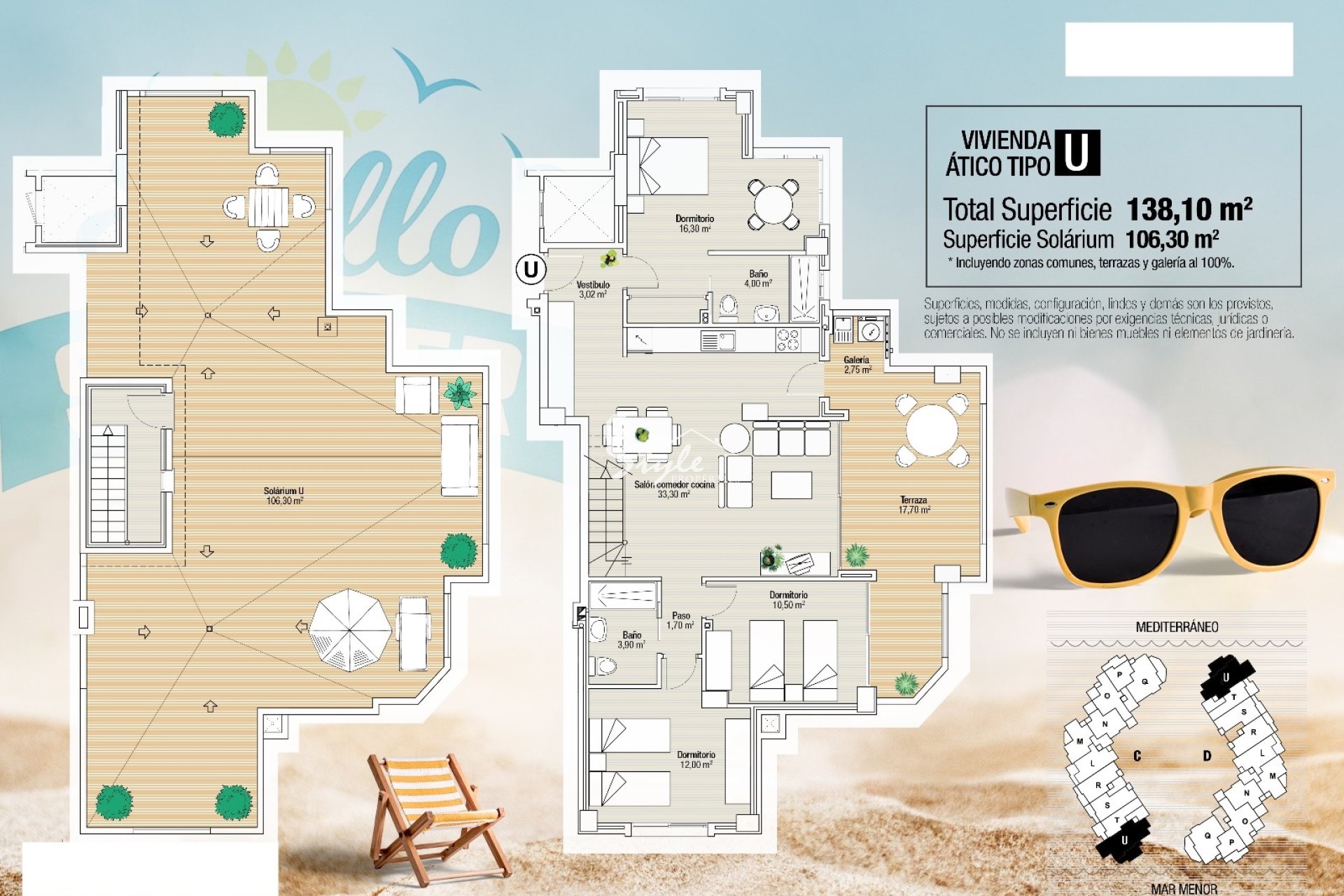 Located in the exclusive area of La Manga del Mar Menor, this residential complex offers a selection of 167 properties including apartments and penthouses. Designed to maximize comfort and functionality, these homes stand out for their impressive sea views, allowing residents to enjoy the beauty of the surroundings from the comfort of their home. The property types vary between apartments and penthouses, offering options of 1, 2, and 3 bedrooms, thus catering to different family and personal needs. Each residence is equipped with modern features such as air conditioning, built-in wardrobes, and electric shutters, ensuring a comfortable and contemporary lifestyle. Additionally, the properties are fully furnished, ready for move-in.