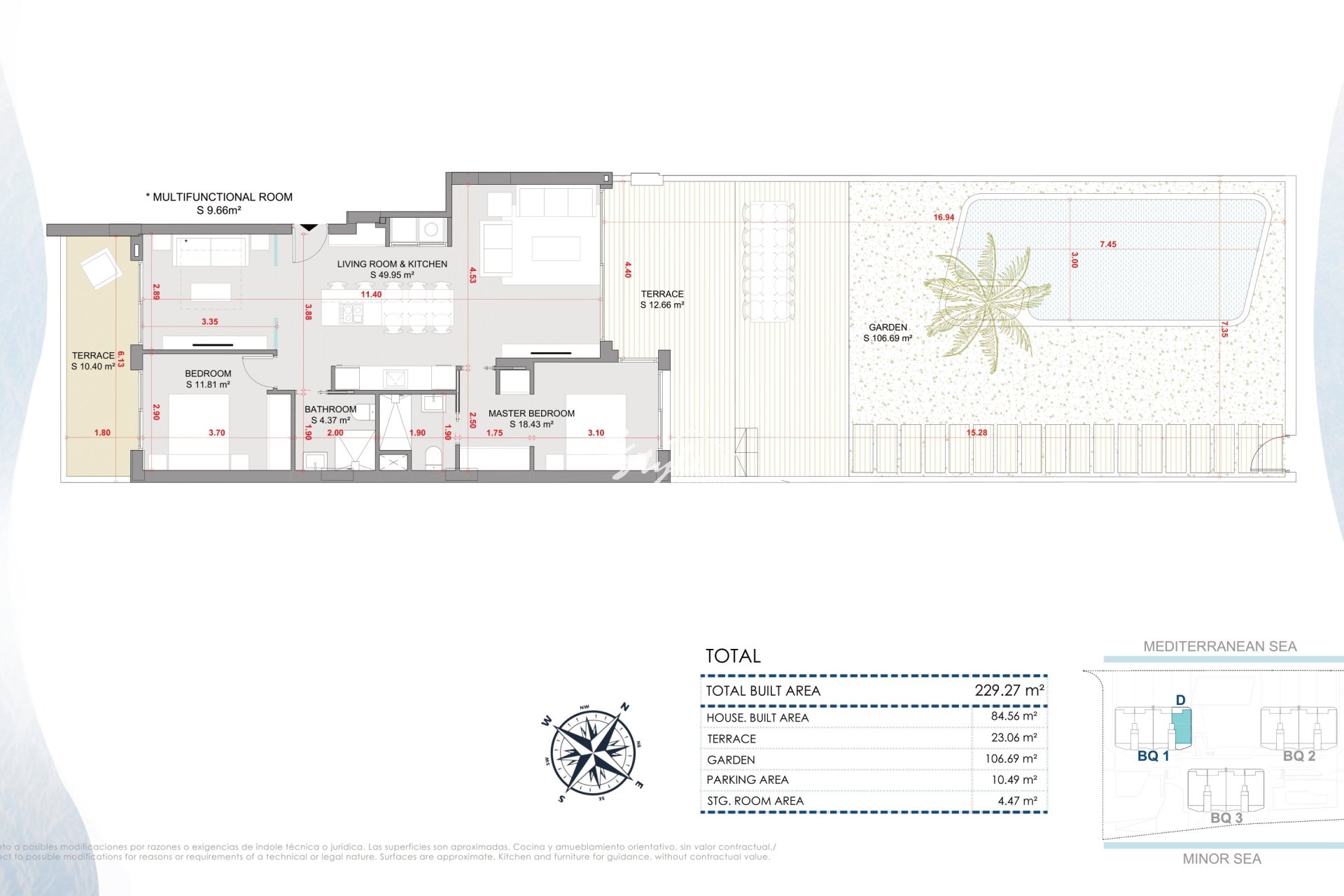 The exteriors of this residential are designed to maximize enjoyment of the natural surroundings. Each property features a private garden, ideal for outdoor relaxation. Spacious terraces offer additional space to enjoy sea views and the Mediterranean climate. Additionally, some types include a solarium, providing an exclusive space for sunbathing or enjoying moments of tranquility. The beachfront location ensures residents can enjoy the sea breeze and uninterrupted views of the horizon.