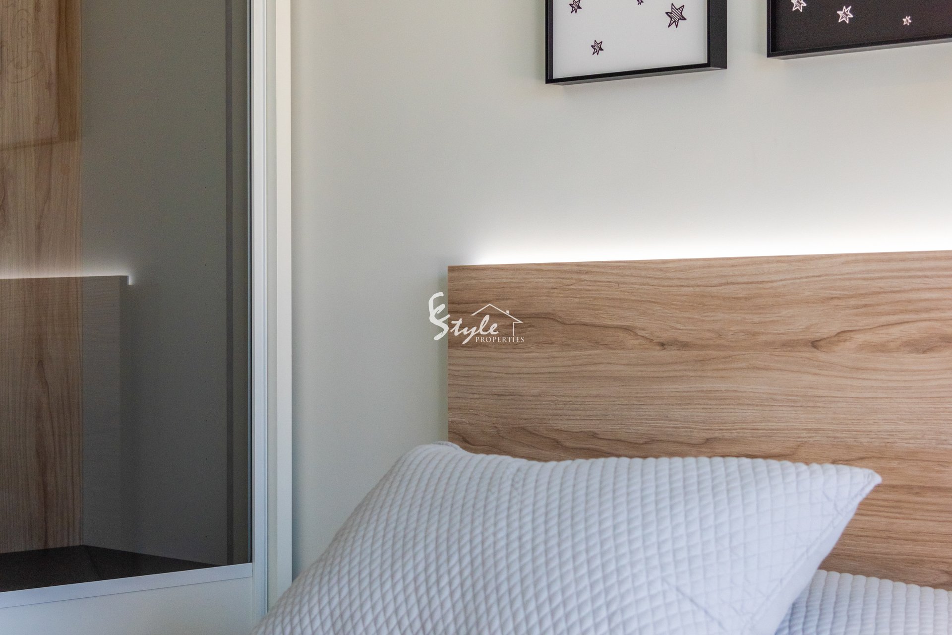 The exteriors of these detached homes in Algorfa are designed to make the most of the Mediterranean climate. Each property features its own private pool, ideal for cooling off during the warm summer days. Additionally, the spacious terraces and solariums offer perfect spaces for relaxation or outdoor gatherings. The presence of pergolas adds a touch of elegance and functionality, providing shade and a cozy place to rest. The gardens, where applicable, are designed to complement the natural surroundings, offering a private green space for each home.