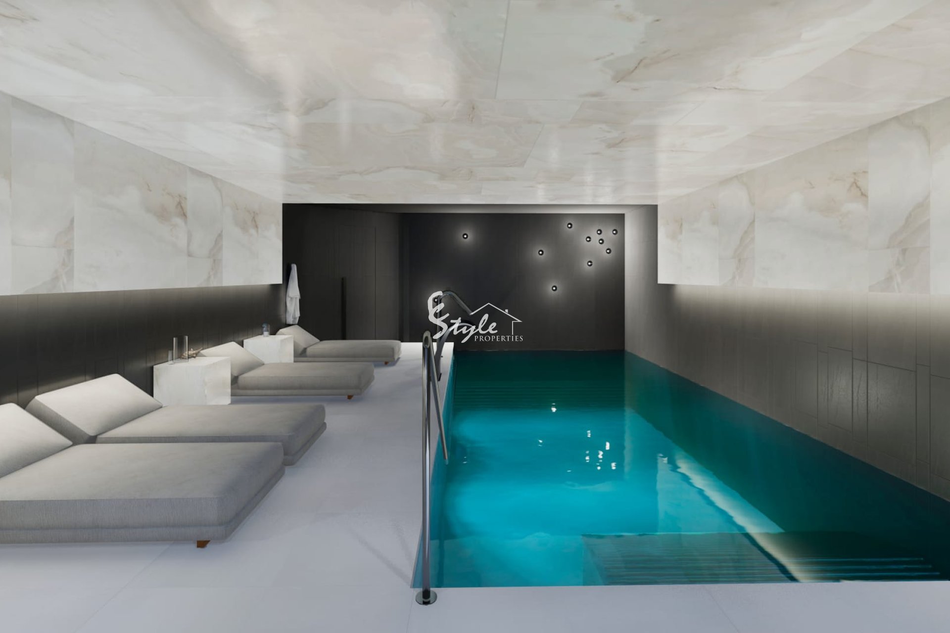 The outdoor spaces of these homes have been designed to offer maximum enjoyment of the Mediterranean climate. Many properties feature terraces, perfect for relaxing outdoors and enjoying sea views. Additionally, some homes have private solariums, providing additional space for leisure and relaxation. The option of a private pool in certain types adds a touch of exclusivity, allowing for a refreshing swim in the privacy of your home. The location just 1 km from the sea facilitates access to Calpe's beaches, known for their fine sand and crystal-clear waters, ideal for water activities and seaside walks.