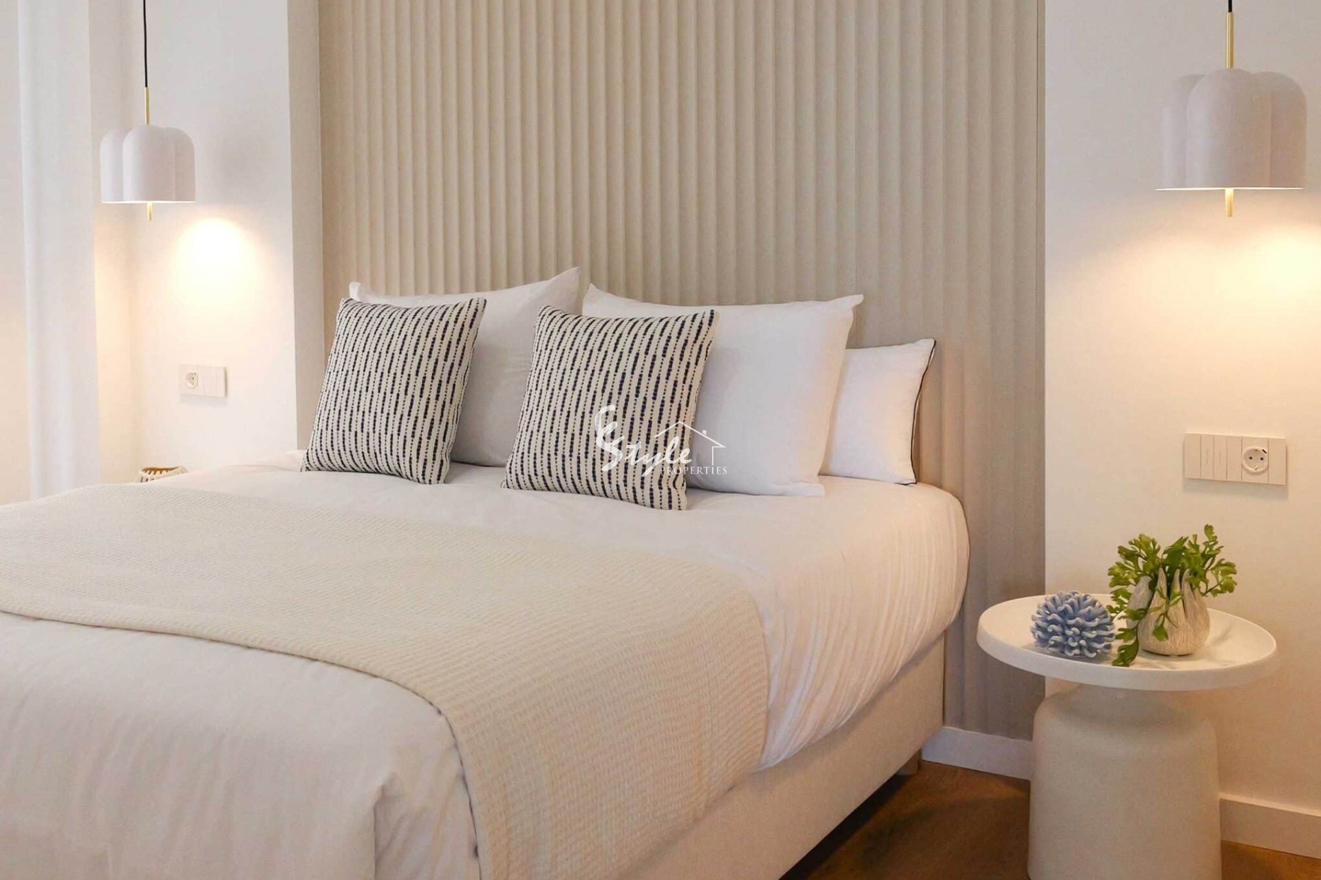 The interior design of the homes in this residential complex in La Manga is crafted to offer maximum comfort and functionality. The available apartments and penthouses feature layouts that include options of 1, 2, and 3 bedrooms, as well as 1, 2, and 3 bathrooms, catering to the needs of different family types. Porcelain tile floors add a modern and elegant touch, while integrated appliances ensure a comfortable and efficient living experience. Built-in wardrobes are designed to optimize space, providing practical and aesthetic storage solutions. Every detail has been carefully considered to create a welcoming and sophisticated environment.