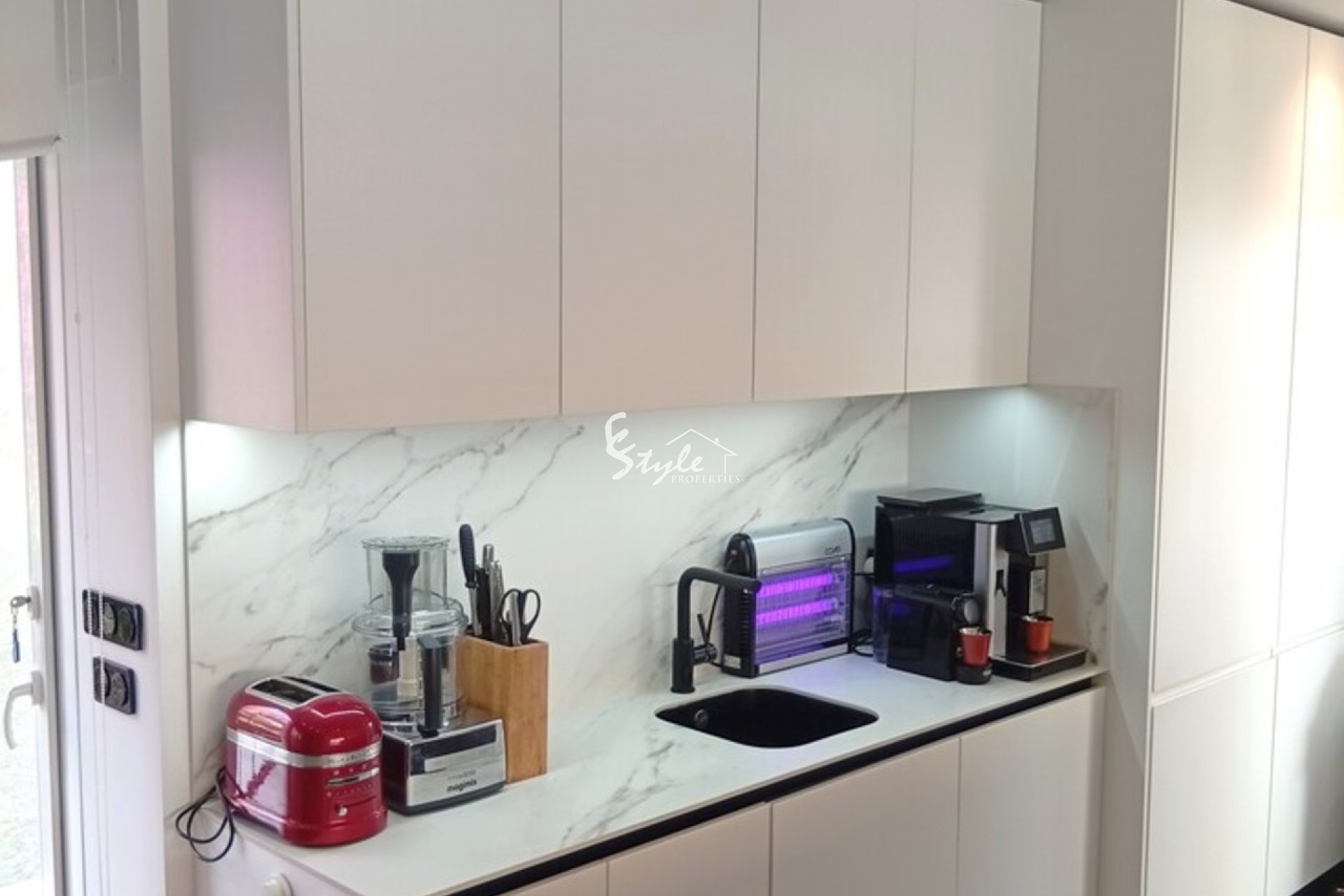 Enjoy the Mediterranean outdoors on the east-facing terrace, overlooking a beautifully landscaped garden full of palm trees, flowers and fruit trees. There is a covered terrace with a built-in BBQ, perfect for cosy evenings.The private swimming pool with wide steps is ideal for relaxation, and in addition you also have access to a communal pool within the urbanisation.