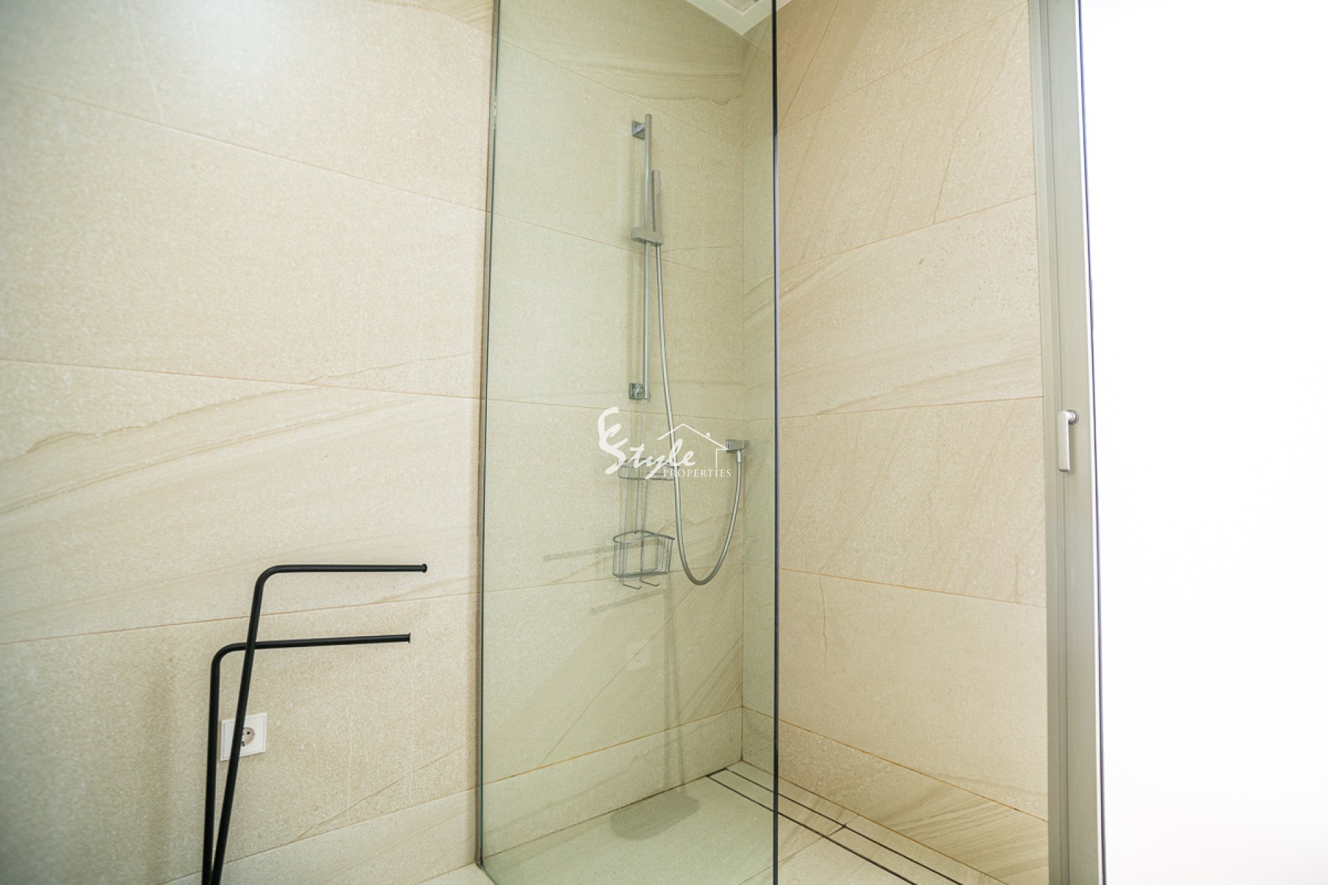 The golf resort is 330 hectares big and has besides the golf course a private beach club on the beach of Campoamor, a communal swimming pool, paddle fields, a fitness, tennis court, 2 nature trails and a mini supermarket. There are 3 restaurants: An Italian restaurant, a sushi restaurant and a club house with golf shop and changing room with showers. The entire domain is secured with its own security with camera surveillance at the entrance.
