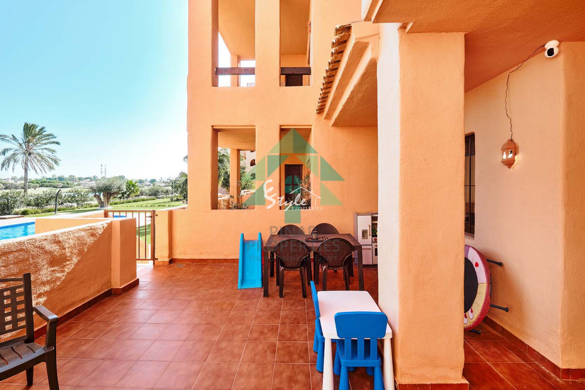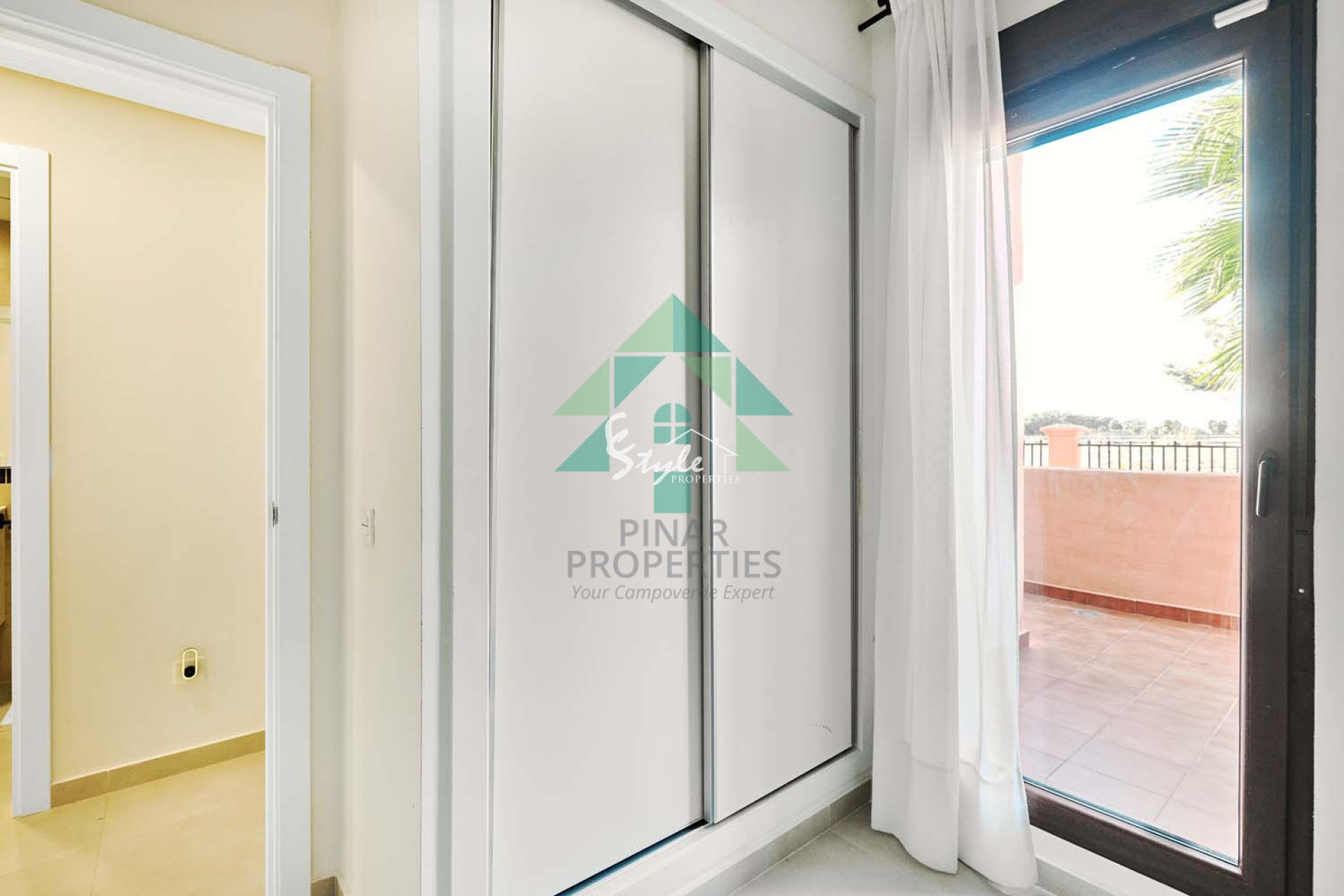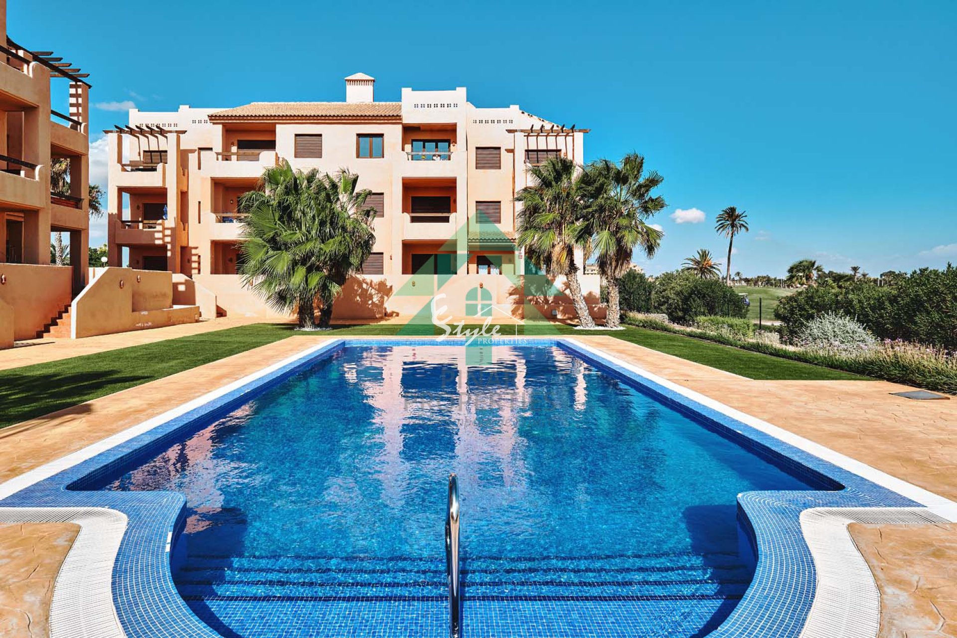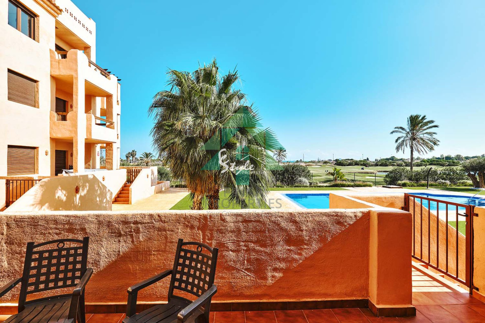 Immaculately presented and modern 3 bedroom, 2 bathroom ground floor apartment with stunning front line golf views and access to a large communal pool which is just steps away from the apartment, situated on the beautiful La Serena golf course which is just a few minutes drive (2.5km) to Los Alcazares town with an array of amenities such as bars, restaurants and shops and is less than 1km from the beautiful beaches of the Mar Menor.