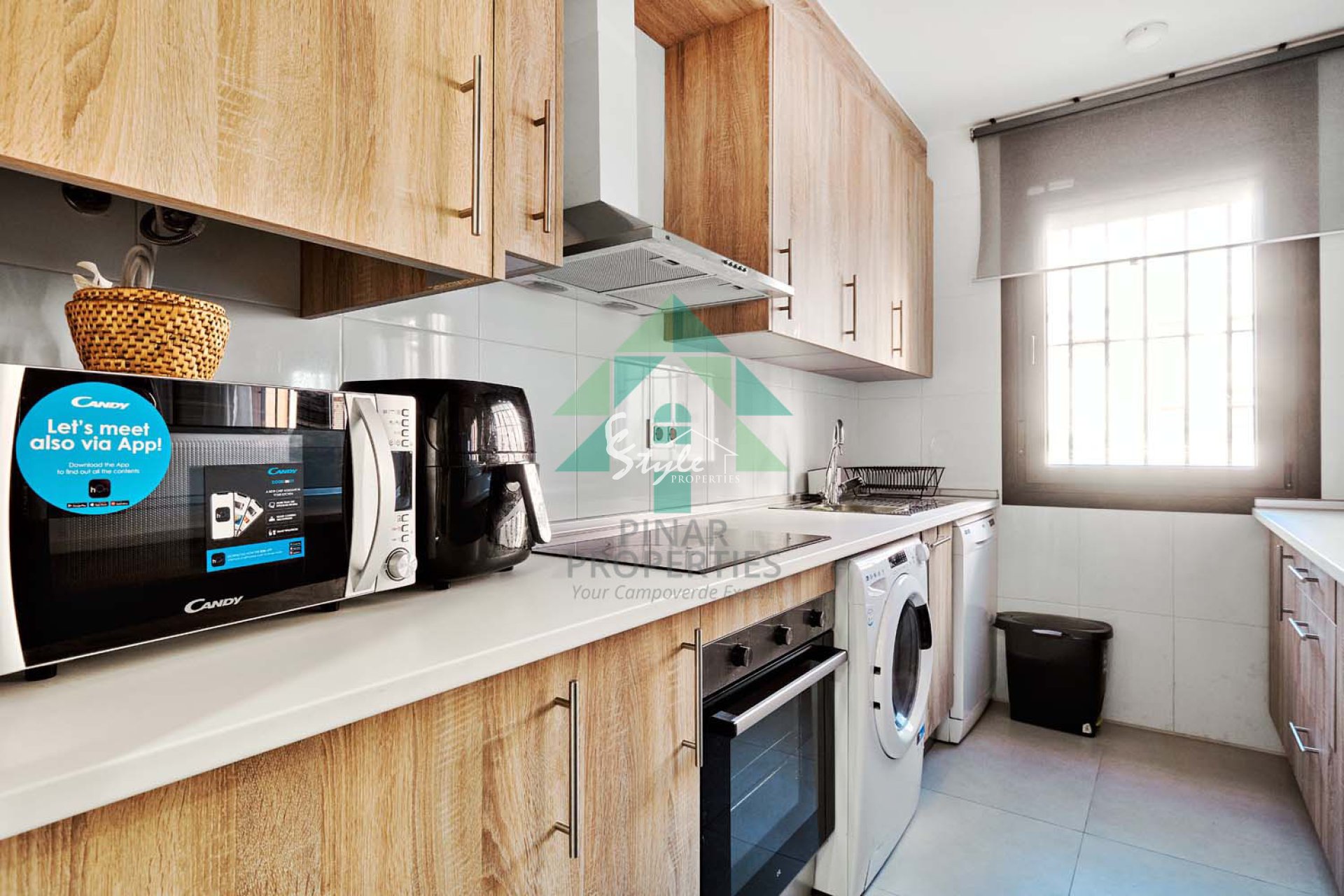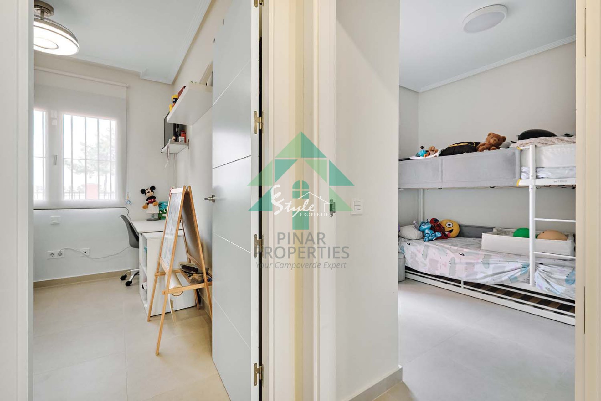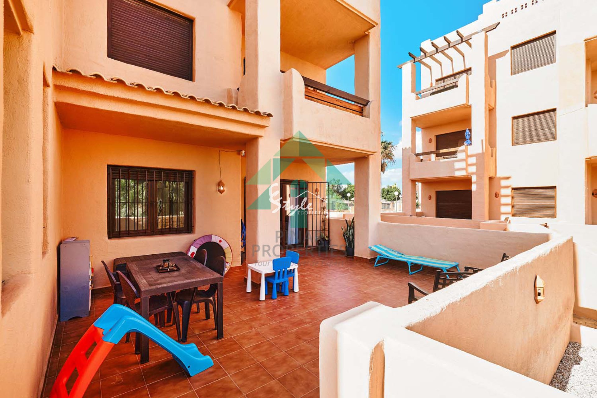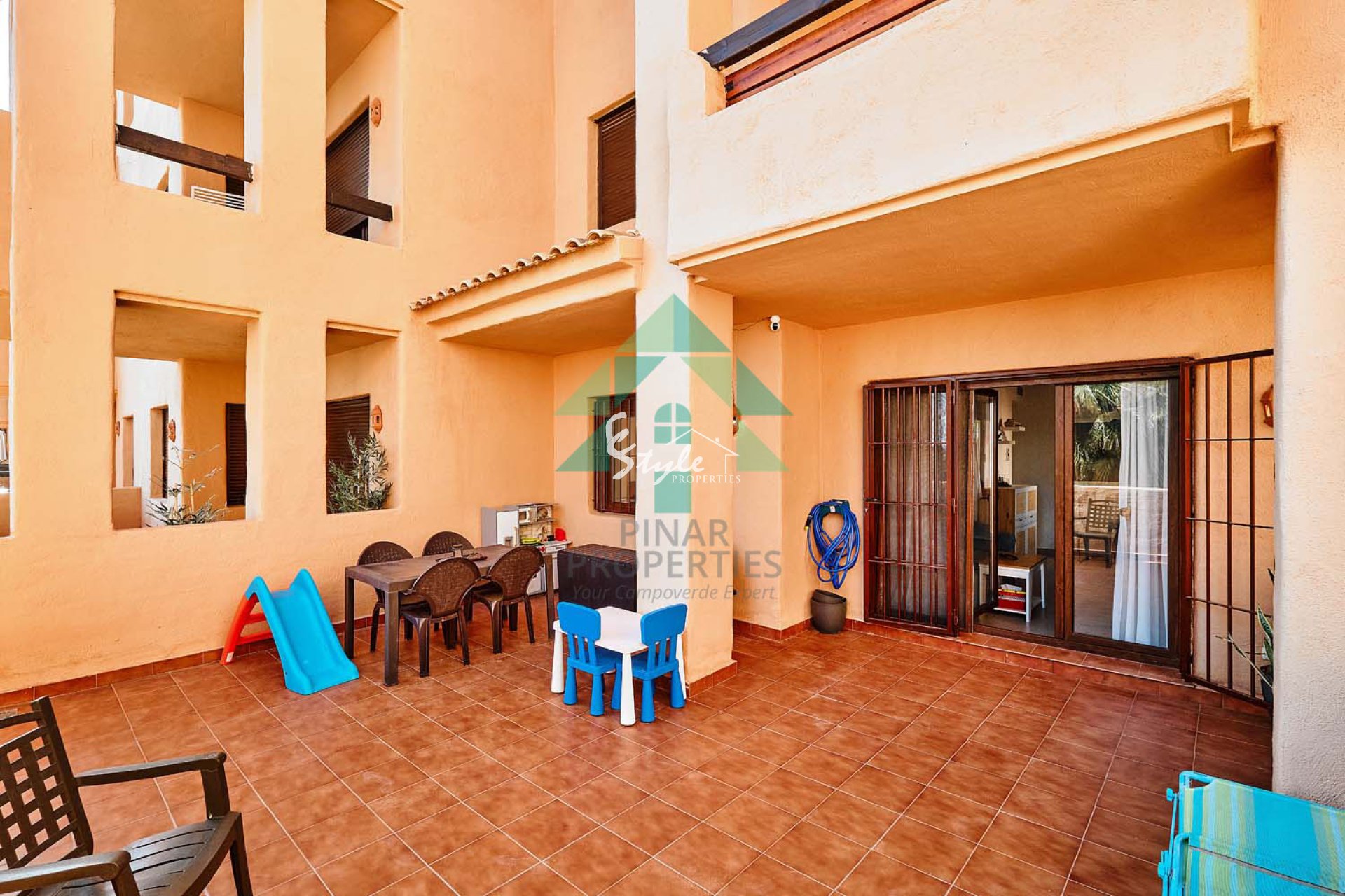 Immaculately presented and modern 3 bedroom, 2 bathroom ground floor apartment with stunning front line golf views and access to a large communal pool which is just steps away from the apartment, situated on the beautiful La Serena golf course which is just a few minutes drive (2.5km) to Los Alcazares town with an array of amenities such as bars, restaurants and shops and is less than 1km from the beautiful beaches of the Mar Menor.