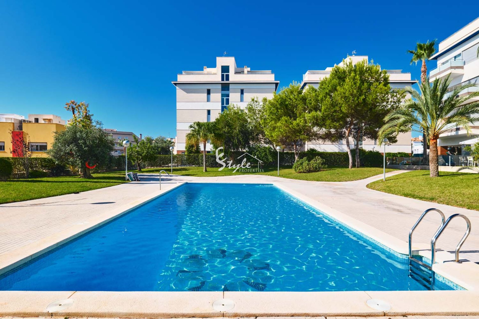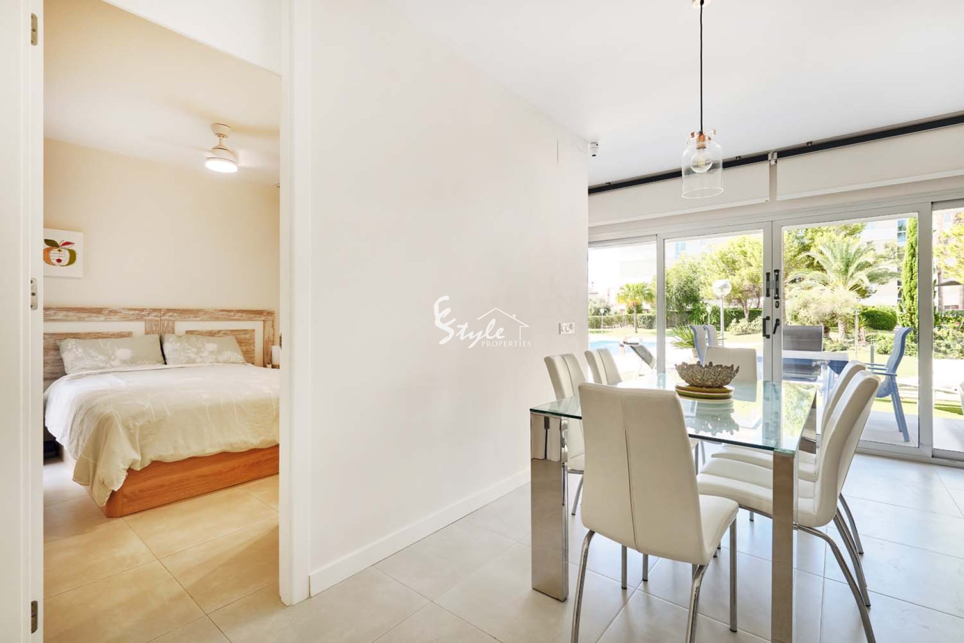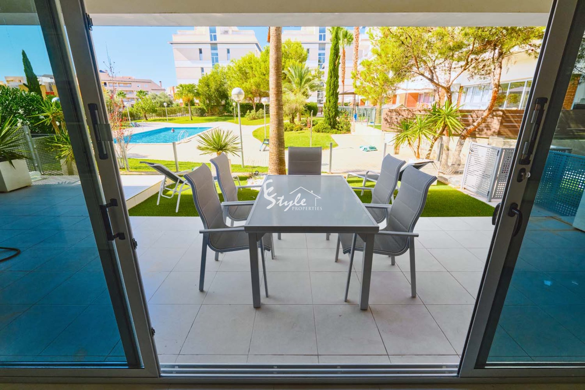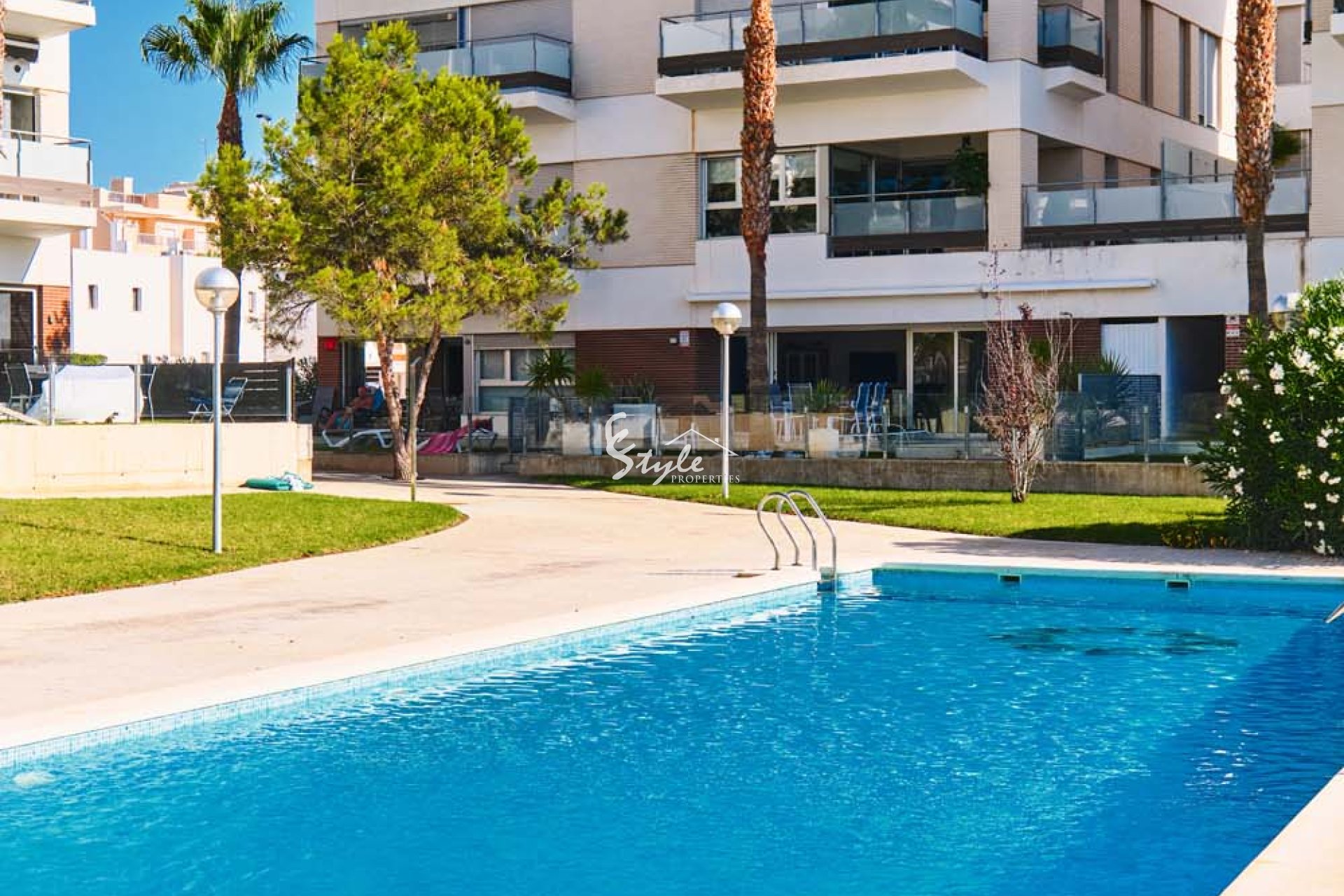 Pinar Properties are pleased to offer for sale this beautifully presented and modern 3 bedroom, 2 bathroom ground floor apartment with private garden in the sought after area of Los Dolses, located close to Villamartin plaza with an array of bars, restaurants and shops and also within walking distance to La Zenia Boulevard shopping centre. The apartment is situated overlooking the communal pool and gardens, it is a gated community with parking and only 3km from the coast which boast stunning blue flag beaches.
