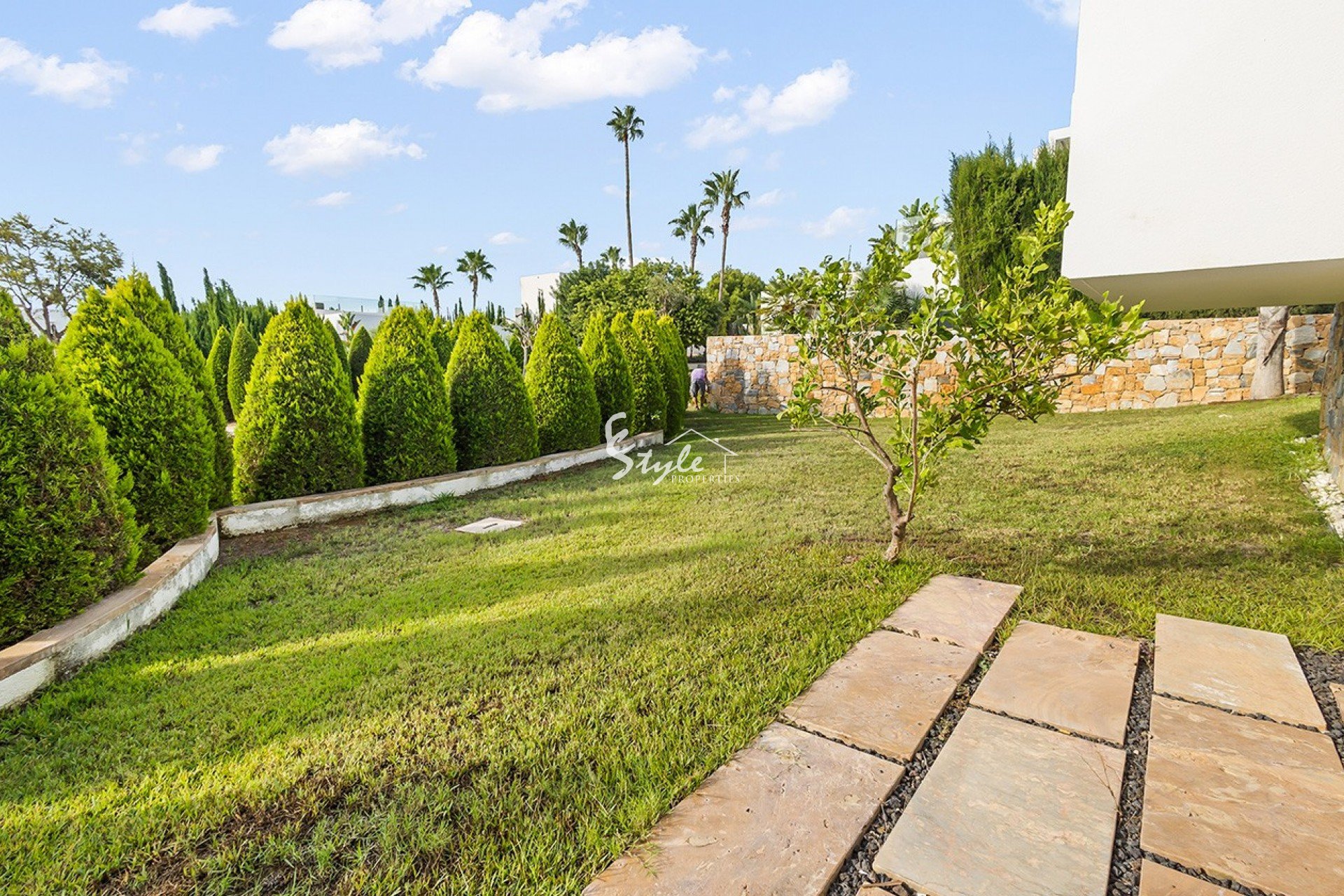 Outside, the villa is framed by lush gardens, including lemon trees and Mediterranean greenery, while a rooftop solarium offers the perfect spot for sunbathing or stargazing. An optional BBQ area or outdoor kitchen makes alfresco entertaining effortless.