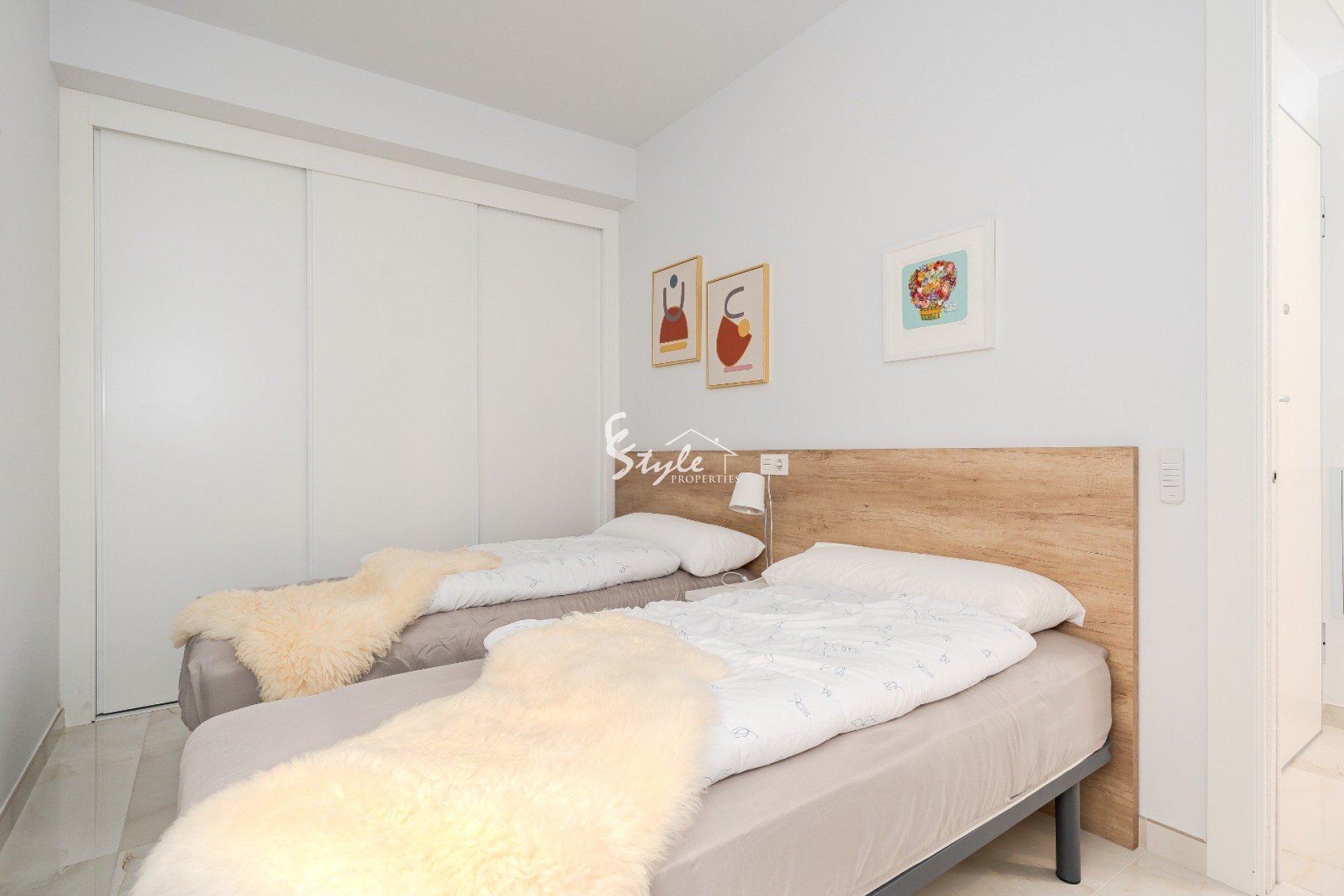 The living room is bright and welcoming, with large windows letting in plenty of daylight. The room is nicely furnished and flows well into the kitchen, creating an open and airy feel. From the living room, you have access to the south-facing balcony, where you can enjoy the sun for most of the day.