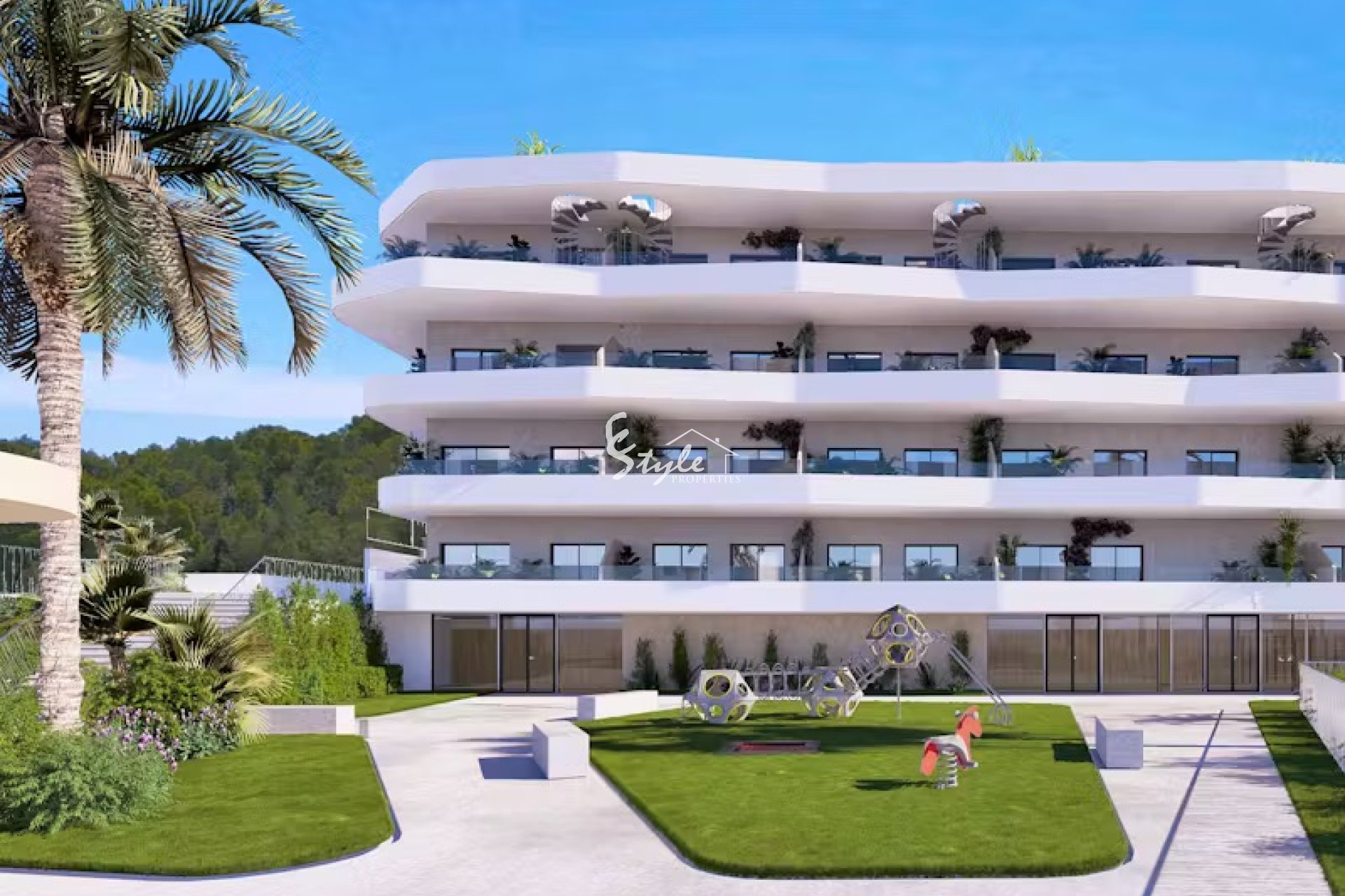 The exterior design of the properties in La Nucía is intended to maximize enjoyment of the Mediterranean climate. All homes feature terraces, perfect for relaxing outdoors and enjoying the views. Additionally, the penthouses have solariums, offering additional space for leisure and relaxation. The exterior finishes are carefully selected to complement the natural surroundings, creating a harmonious and attractive environment. The communal garden areas add a touch of greenery and freshness, providing a common space where residents can enjoy nature without leaving home.