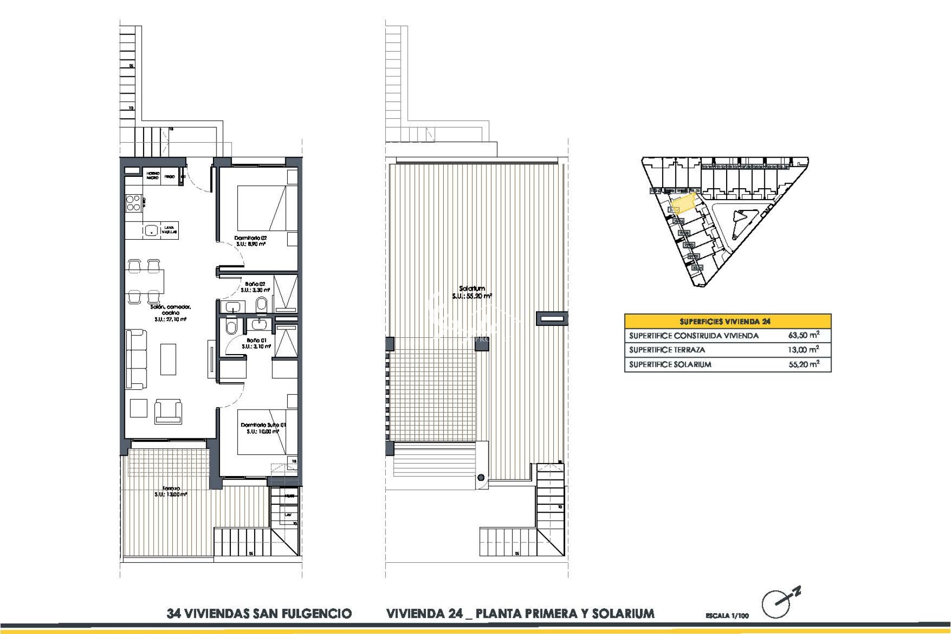 The outdoor spaces of these properties are designed to maximize enjoyment of the Mediterranean climate. Each bungalow features a private garden, perfect for creating a personal green space or enjoying outdoor moments. Additionally, the terraces offer an ideal place to relax, dine al fresco, or simply enjoy the views. The presence of a solarium in each property adds a special touch, allowing residents to make the most of the sun year-round. The inclusion of pergolas provides shade and style, making the outdoor spaces versatile and inviting.