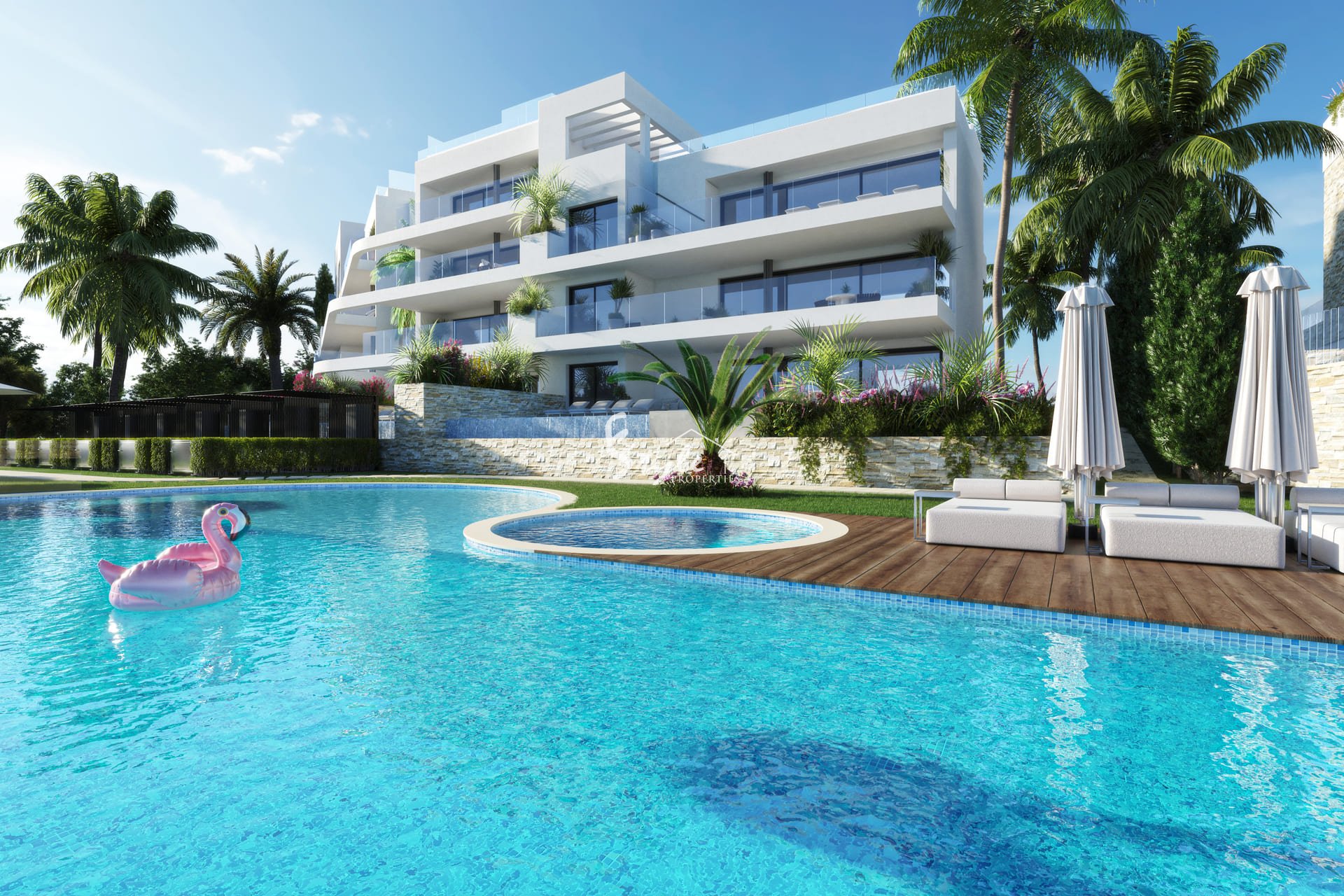 The properties feature outdoor spaces designed to enjoy the Mediterranean climate. Each home has a private garden, ideal for relaxing outdoor moments. Additionally, the spacious terraces offer extra space to enjoy the views and surroundings. For those seeking additional outdoor space, some types include a solarium, perfect for sunbathing or enjoying an outdoor dinner.