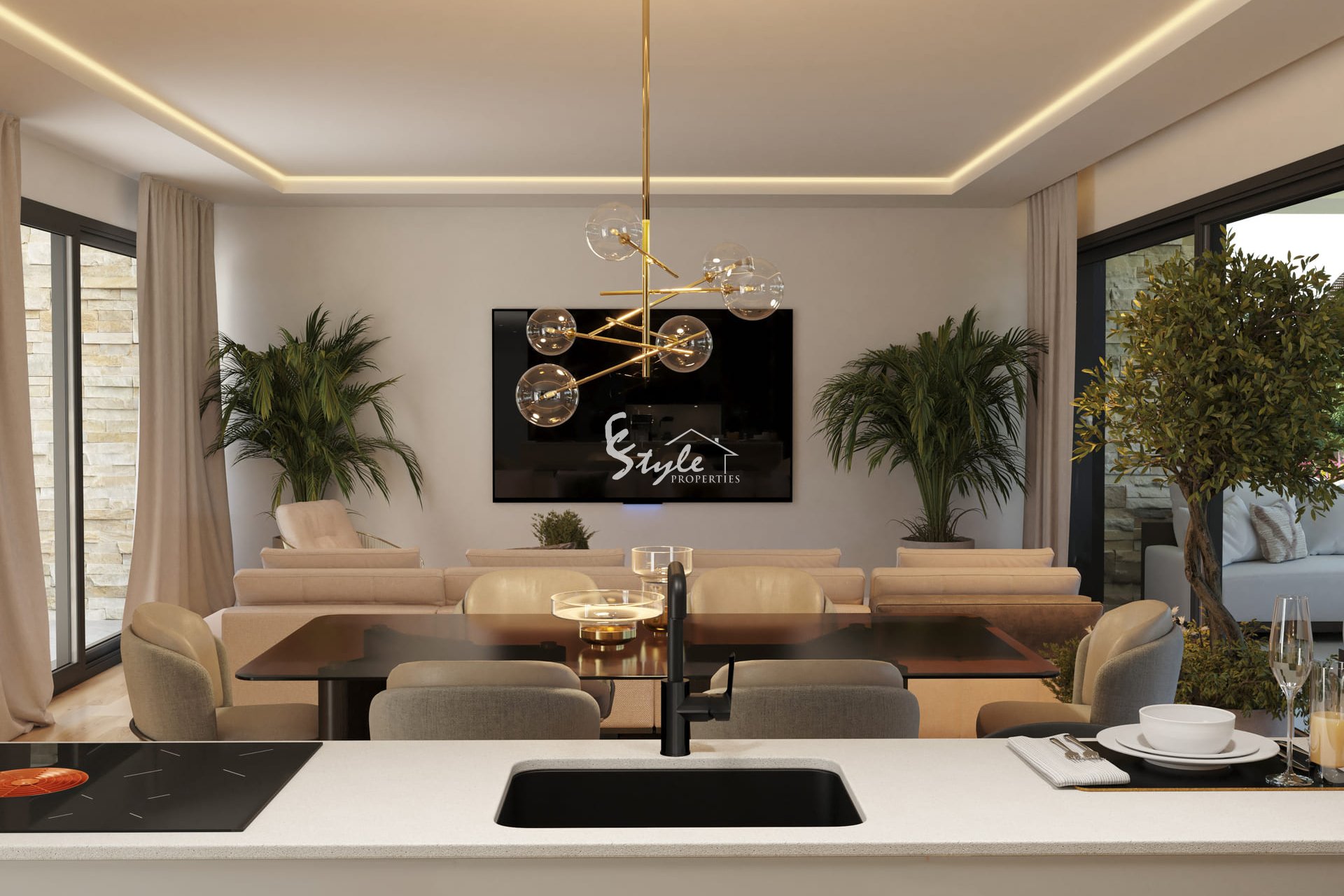 The interior of the homes is designed to offer maximum comfort and functionality. Apartments and ground floor options are available with two or three bedrooms and two or three bathrooms, catering to the needs of different types of families. The homes are fully furnished and equipped with modern appliances, wooden floors that add warmth, electric blinds for added convenience, and built-in wardrobes that optimize storage space. Additionally, the pre-installation of air conditioning ensures a pleasant environment throughout the year.