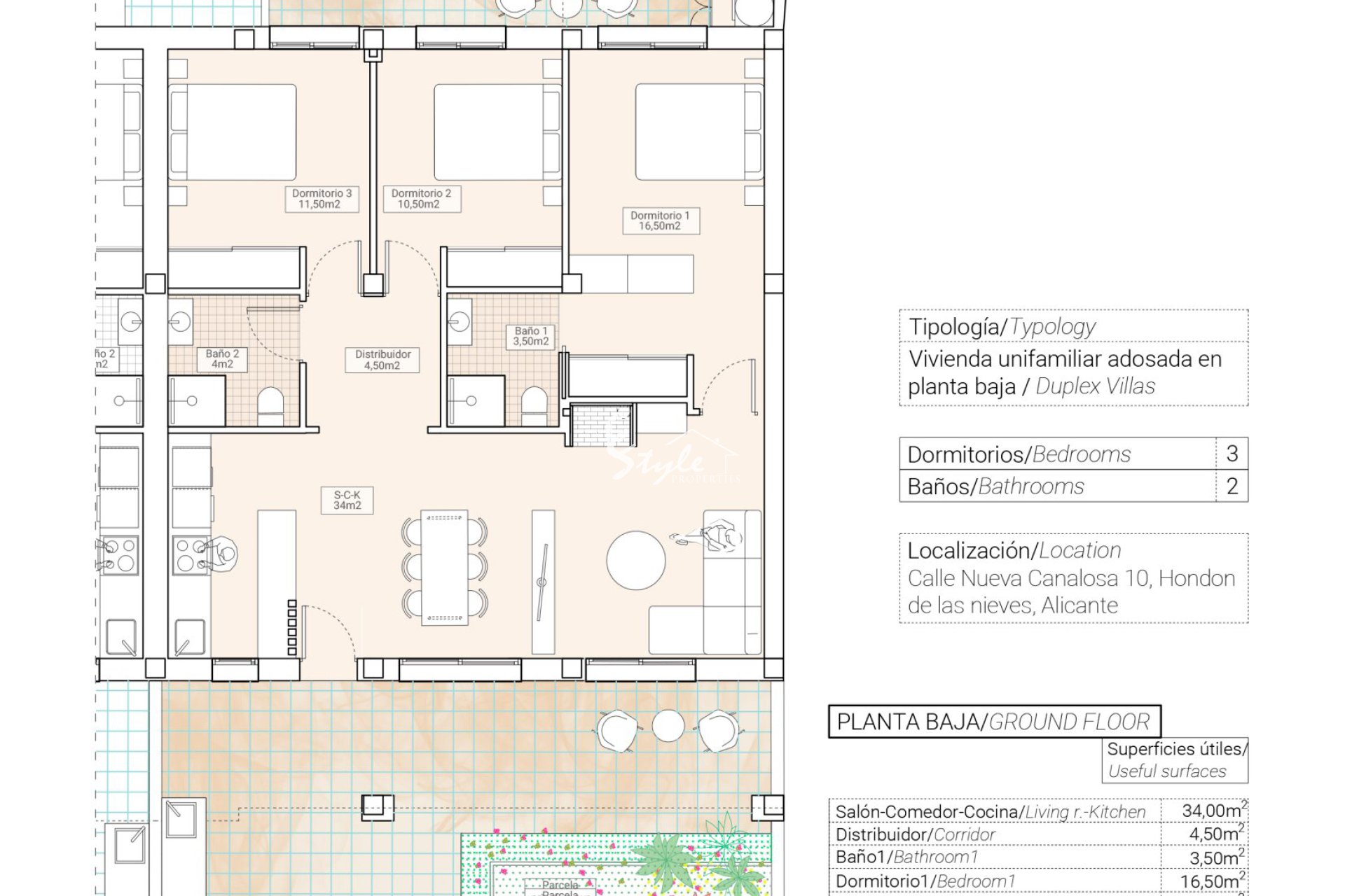The interior of these properties is carefully designed to offer comfort and functionality. With three bedrooms and two bathrooms, each bungalow is equipped to meet the needs of a modern family. The finishes include ceramic floors, which add an elegant touch and are easy to maintain. Electric shutters and included appliances add an extra level of convenience. Built-in wardrobes offer ample storage space, while the pre-installation of air conditioning ensures the home is ready for any season. The complete furniture allows for a hassle-free move, making the transition to your new home as smooth as possible.