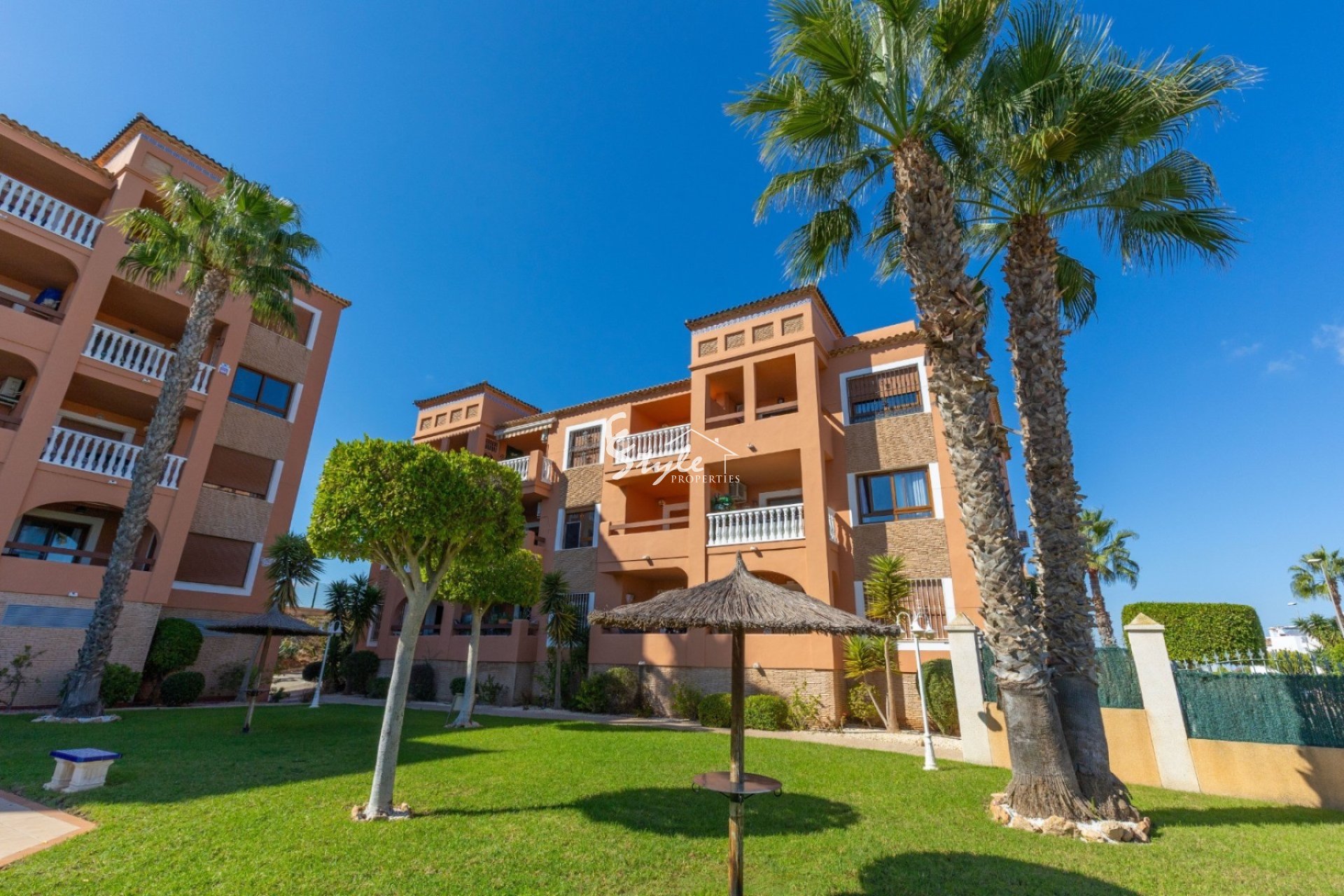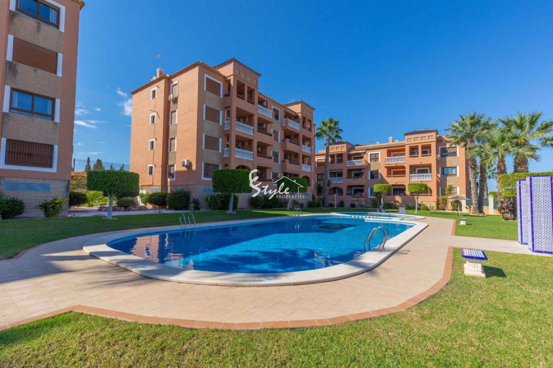 The residential complex offers a beautifully landscaped communal garden with a large swimming pool, perfect for relaxing and cooling off. In addition, the apartment includes a private parking space within the gated community, providing extra convenience and security.