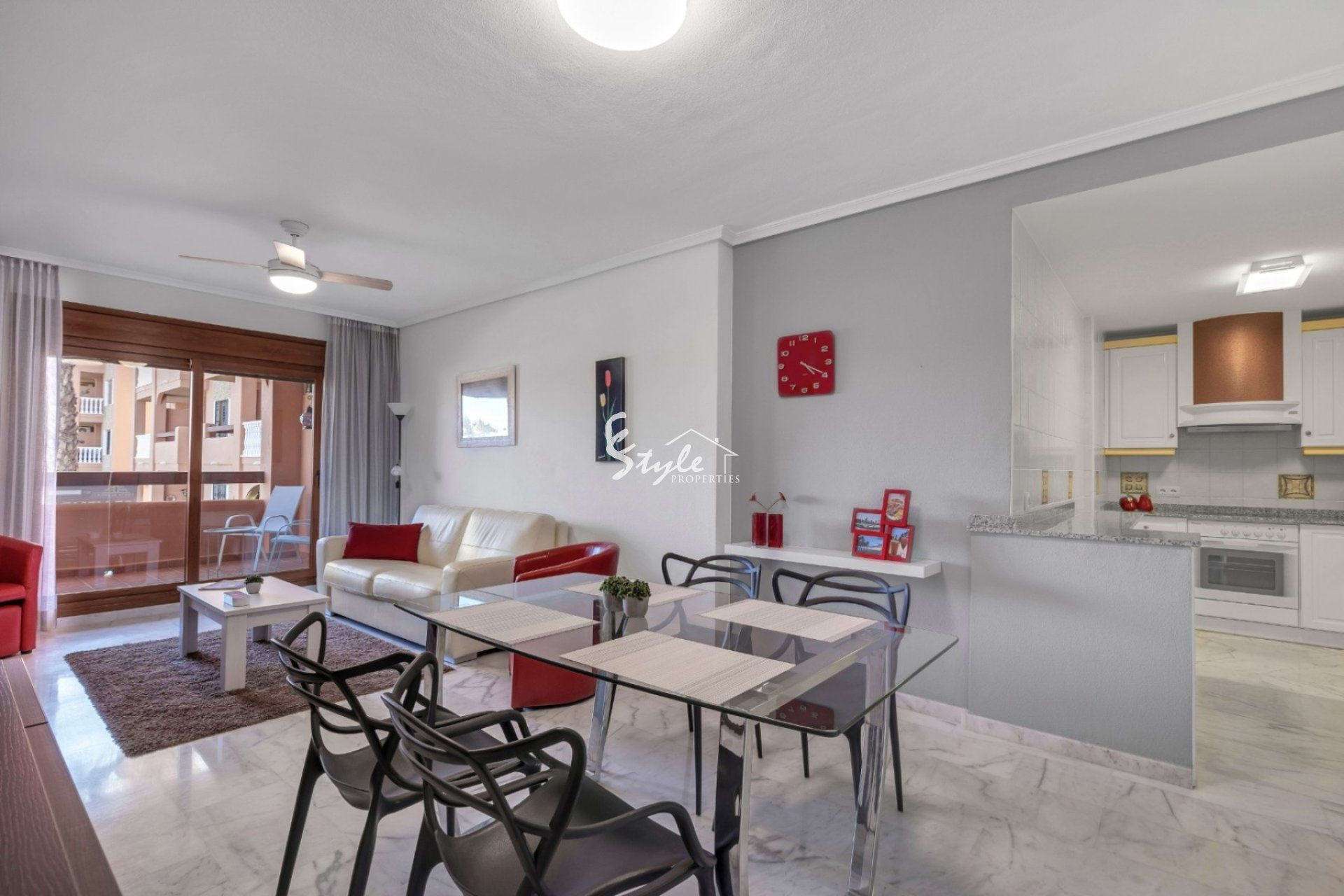 At E-Style, we are pleased to present this magnificent first-floor apartment with a sunny terrace, located in a quiet and well-maintained residential complex in one of the most sought-after areas of Orihuela Costa, just a short walk from Villamartín Plaza.