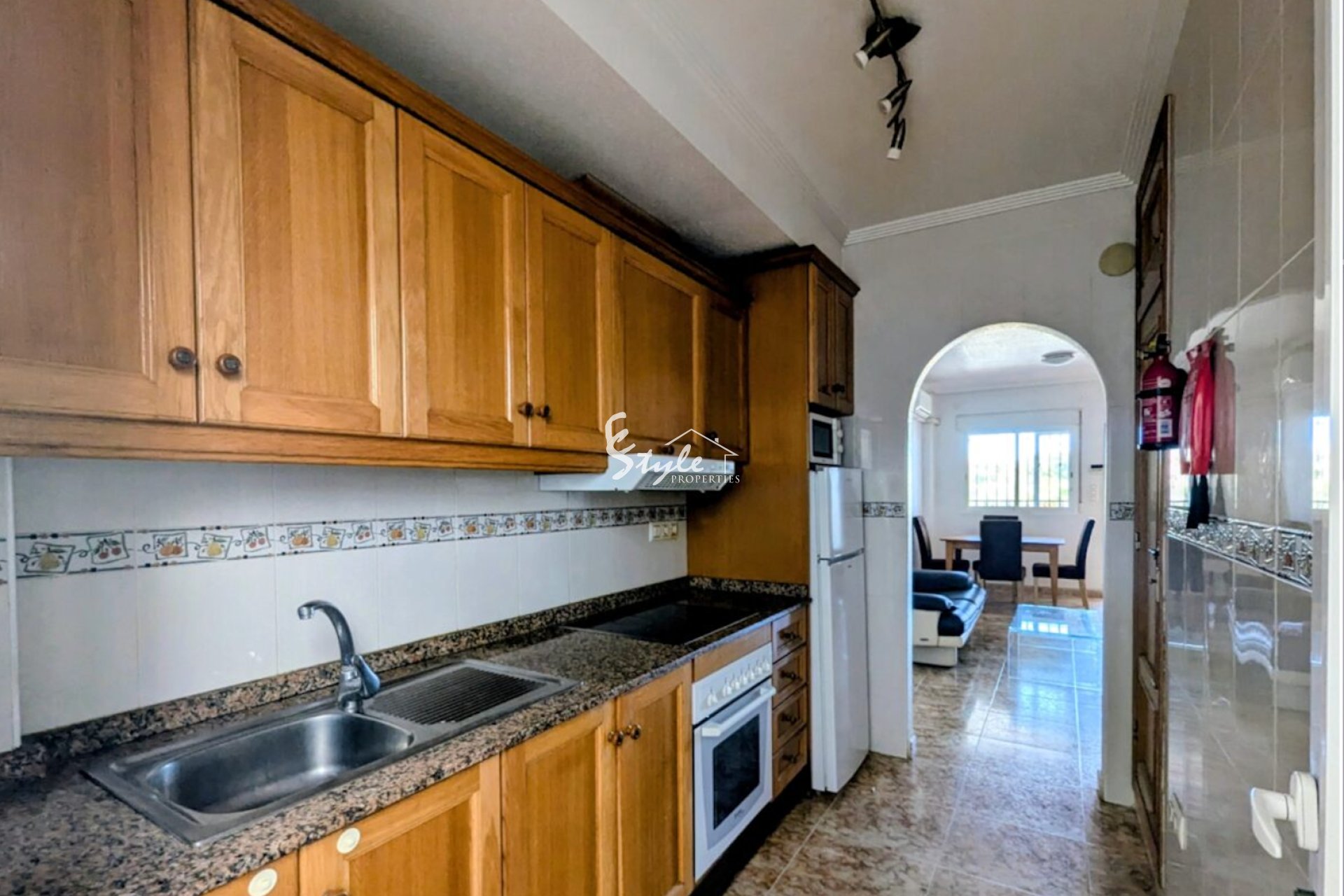 The property boasts a generous front terrace, perfect for enjoying outdoor meals or relaxing in the open air. Inside, the apartment offers a bright and spacious living and dining area, creating a comfortable and welcoming atmosphere. The kitchen is located at the rear of the property and has direct access to a private patio, adding extra practicality and storage space.