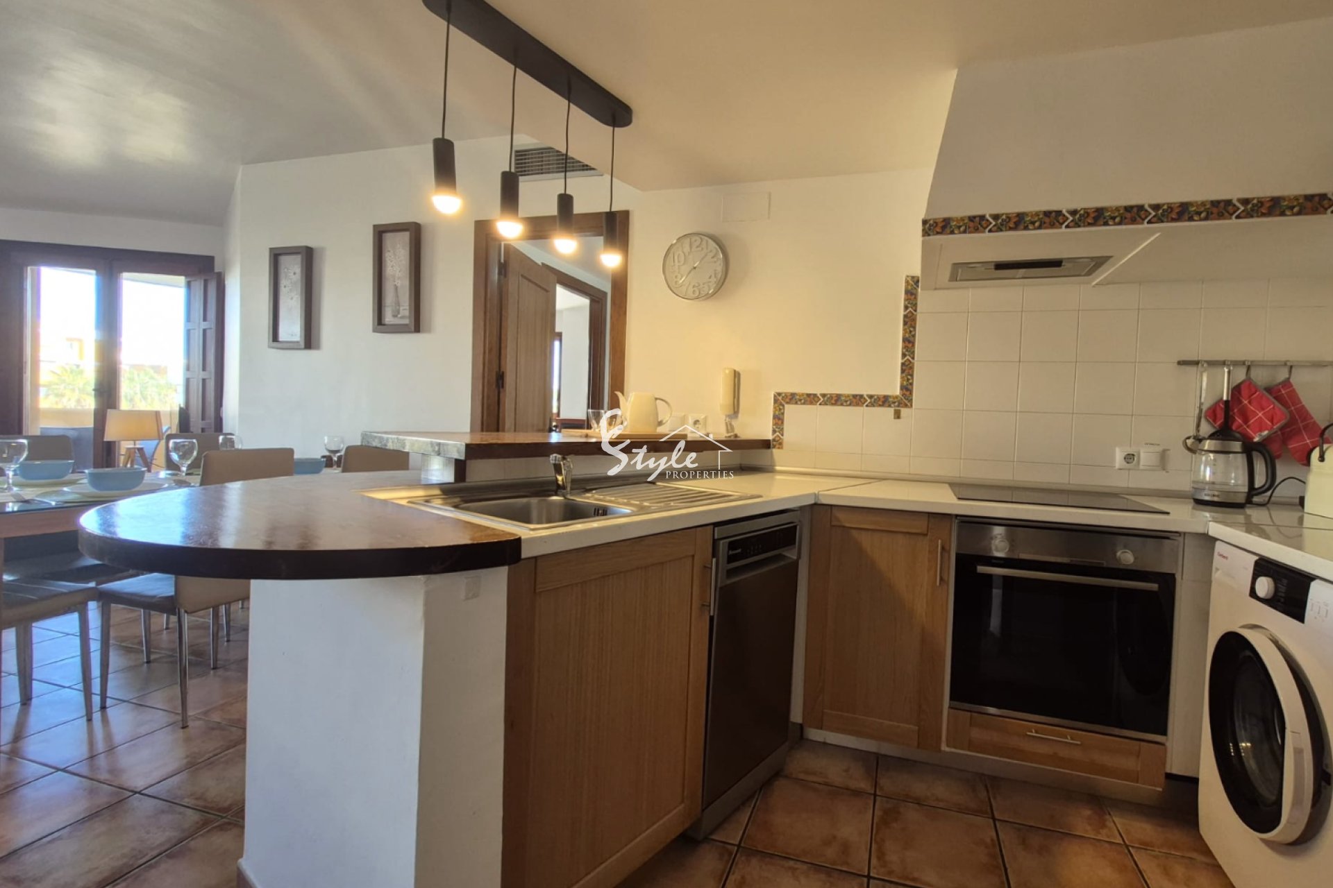 Situated in the very center of Punta Prima, one of the most sought-after areas of the Costa Blanca, the apartment is sold fully furnished and ready to move into. This makes it an excellent option both as a holiday home and as an investment for short- or long-term rental.