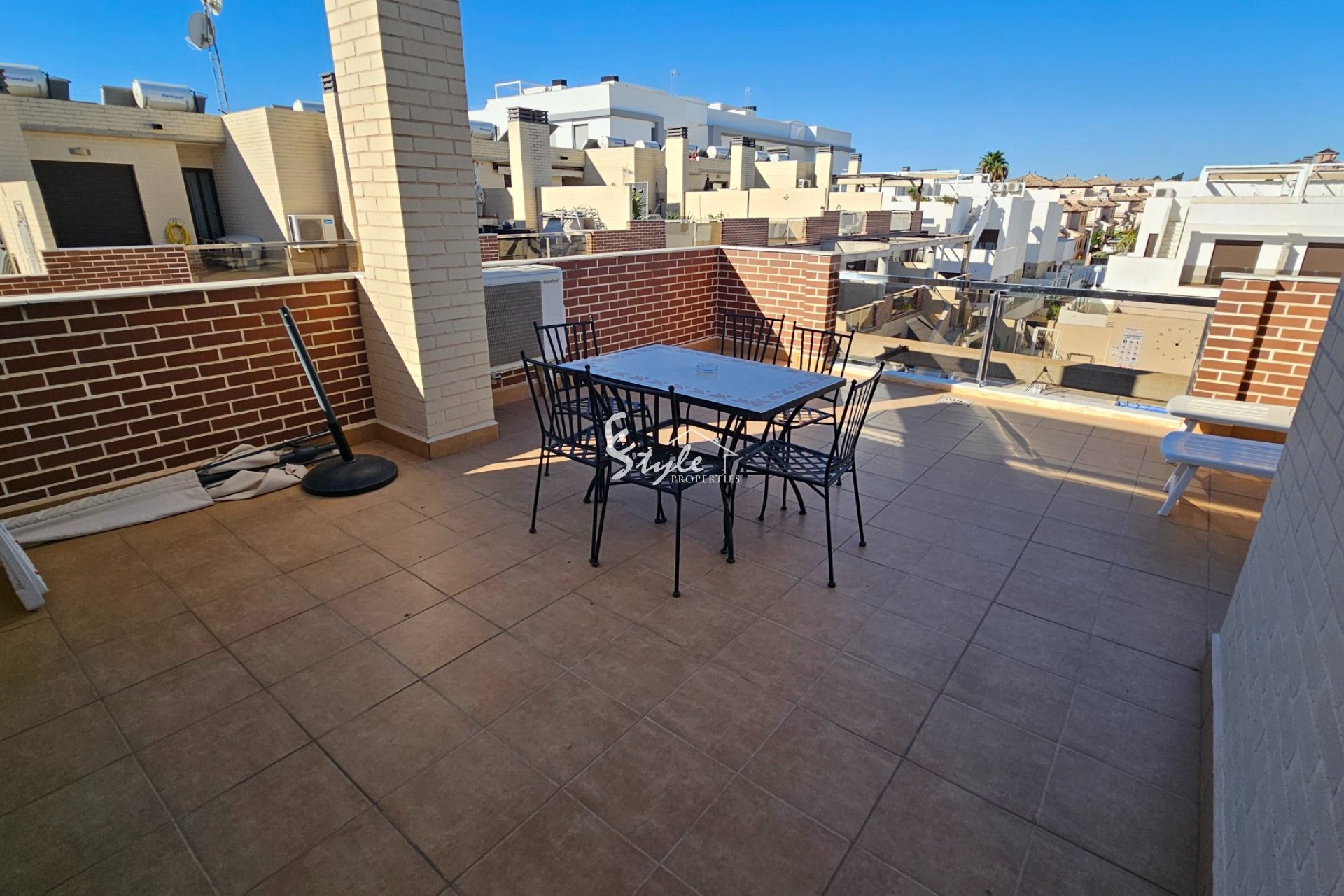 In Lomas de Cabo Roig, within walking distance of shops, bars, restaurants, and amenities, we find this very well-located top-floor apartment with a private roof terrace! The apartment has 3 bedrooms and 2 bathrooms, making it comfortable for 6 people. In addition to a beautiful communal pool, the residence also features a gym, sauna, and heated jacuzzi! The apartment includes a parking space in the underground garage. Contact us for more information or to schedule your viewing!