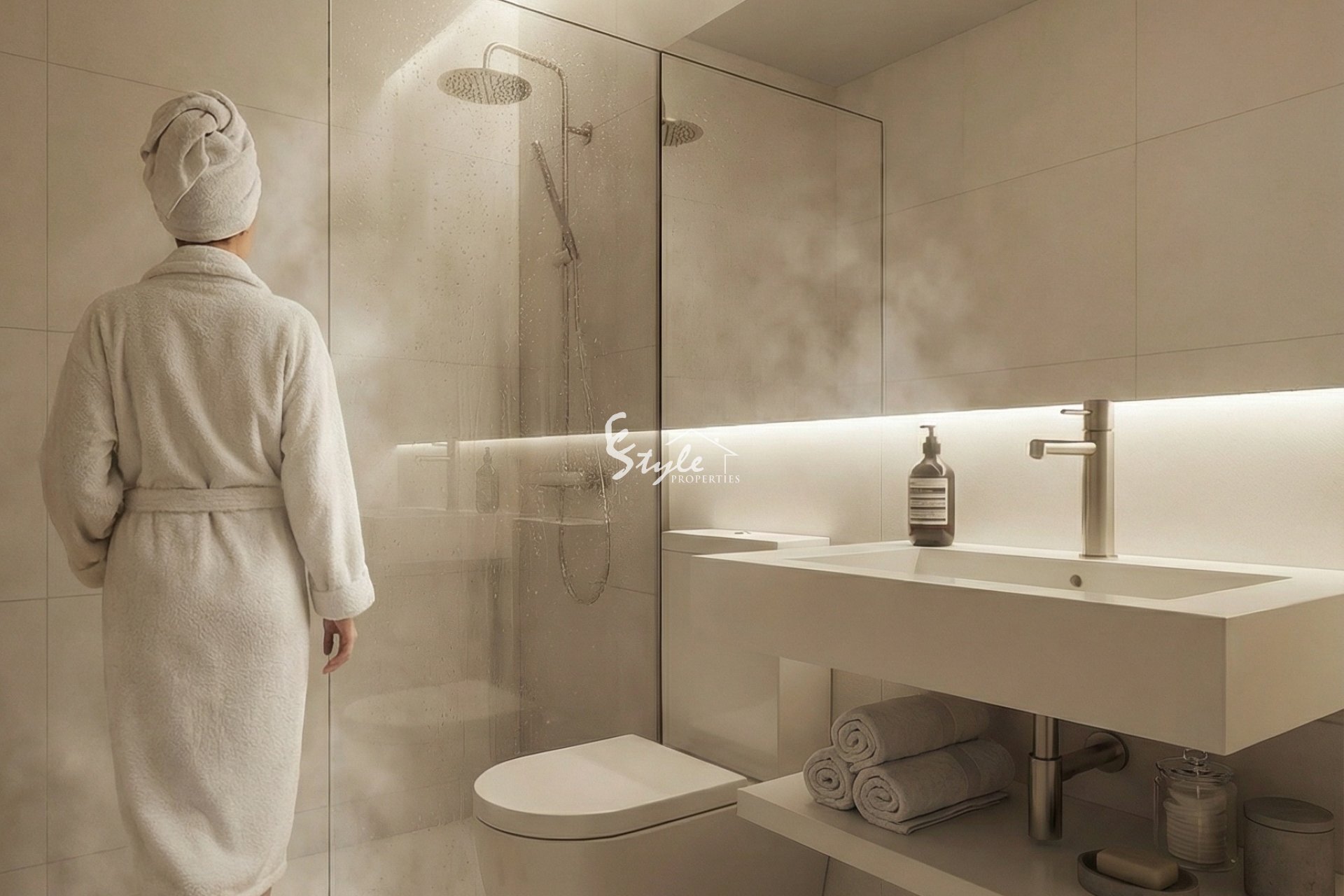 The interior of these independent homes in Alfaz del Pi is designed with attention to detail and functionality. The villas feature two bedrooms and one bathroom, offering a cozy and well-distributed space. The wooden flooring adds warmth and elegance to each room, while the integrated appliances make daily life easier. Built-in wardrobes optimize storage space, maintaining order and aesthetics. Additionally, each home is equipped with a video intercom, adding an extra level of security and convenience for residents.