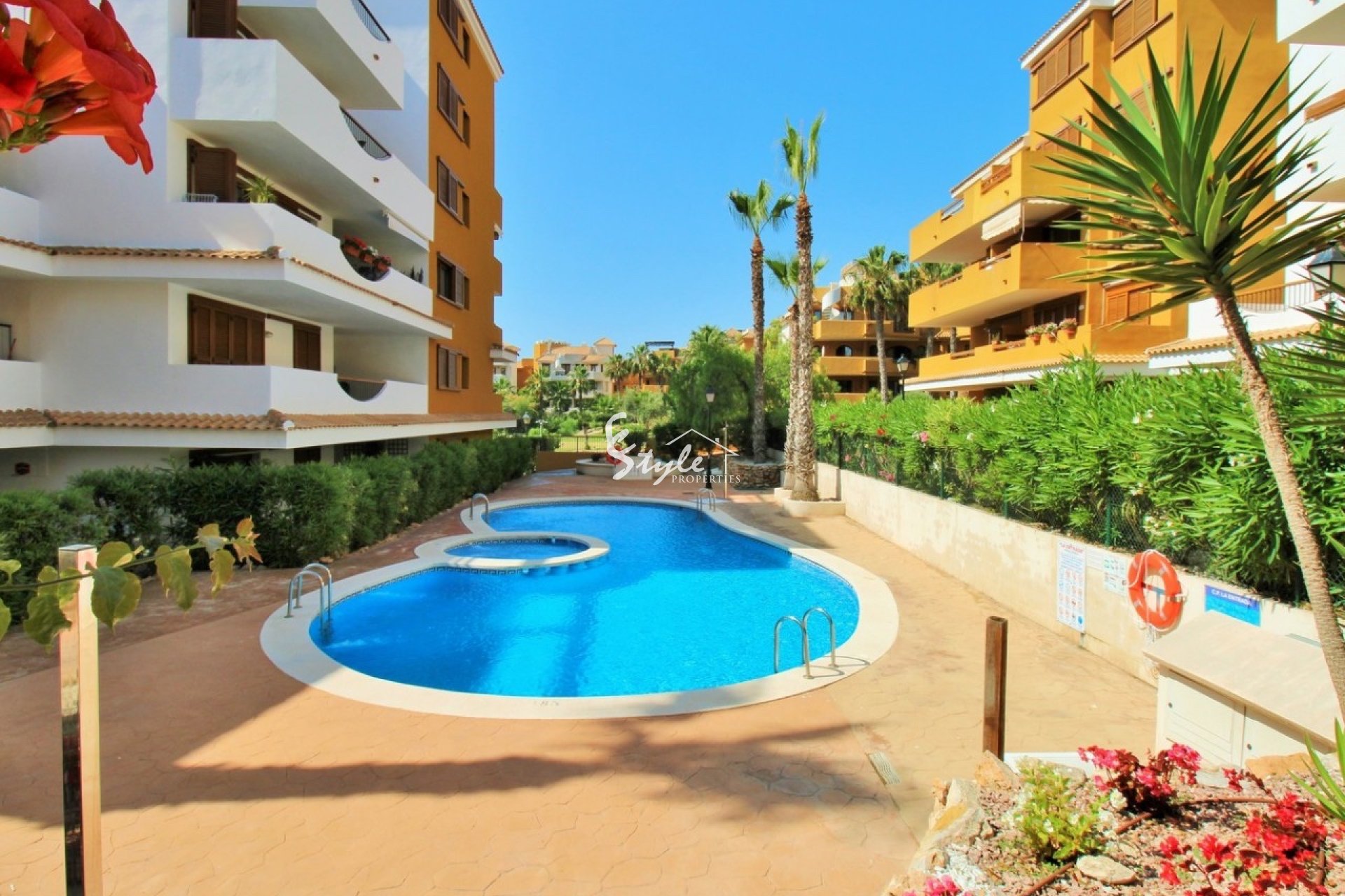 The complex La Entrada in Punta Prima is well known for its beautiful communal areas, tropical gardens, and swimming pools, making it an excellent choice for a holiday home, permanent living, or property investment on the Costa Blanca.