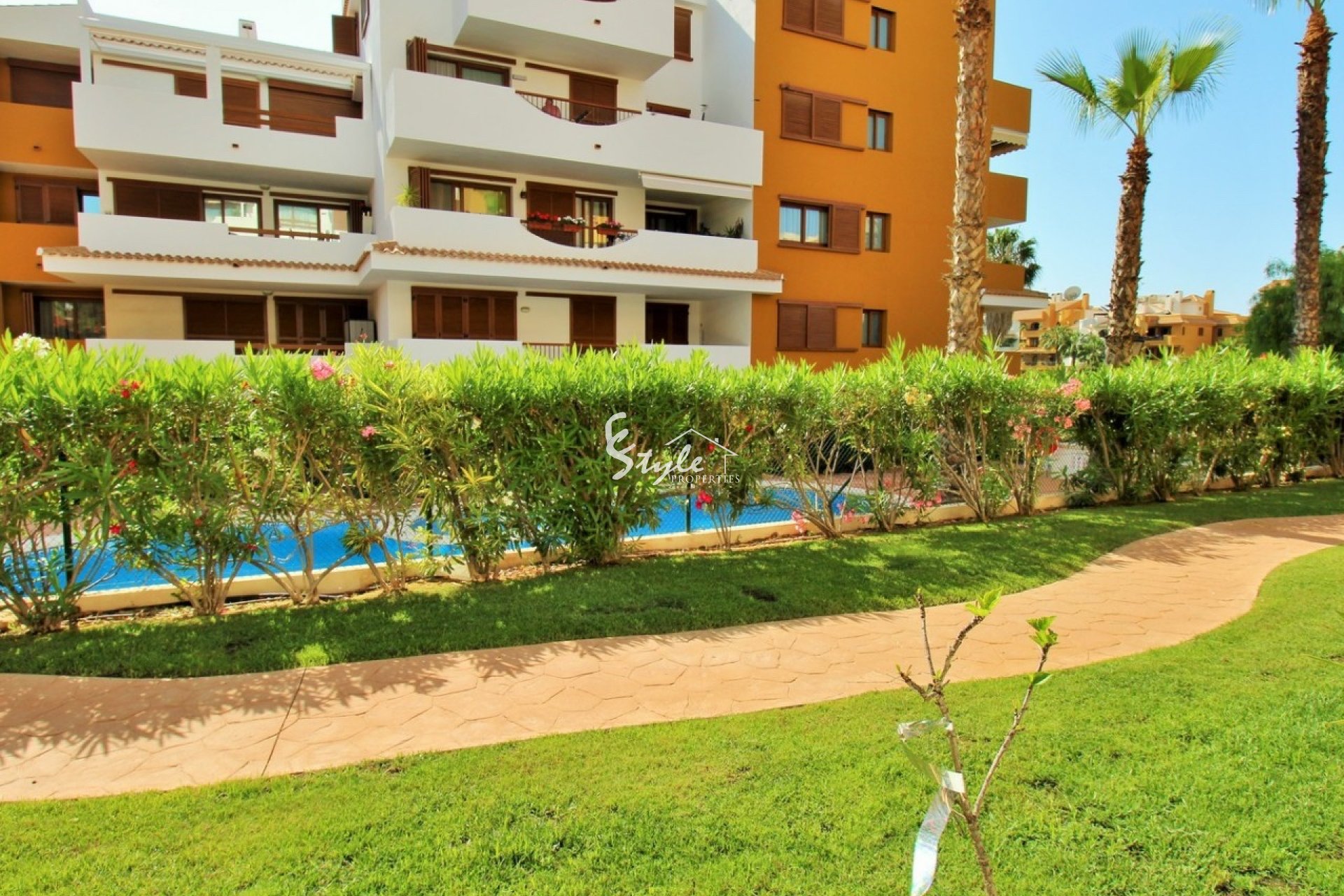 This comfortable ground floor apartment in the prestigious residential complex La Entrada in Punta Prima is located in a secure gated community just a short walk from the beach.