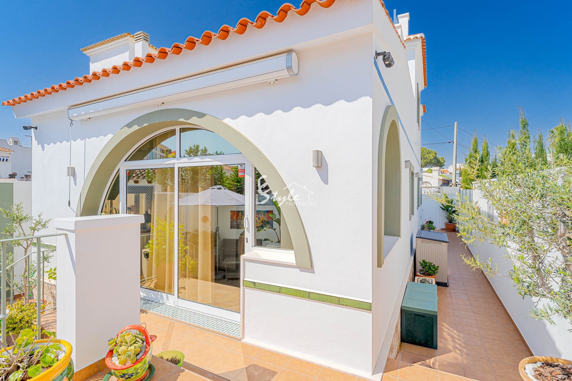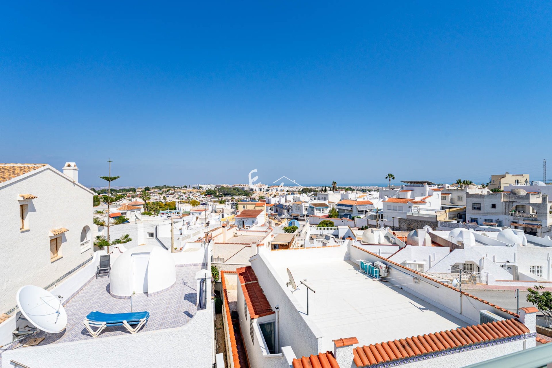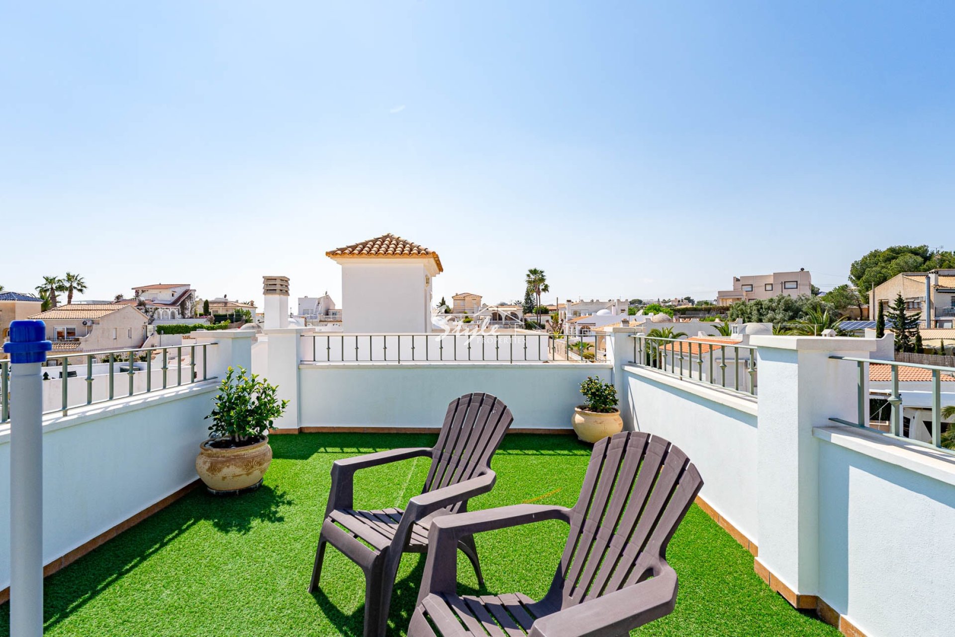 Located in a quiet residential area, this southwest-facing villa has two separate entrances. Only 4 km to the beachand 3 km to La Zenia Boulevard shopping center, with access to a community pool.