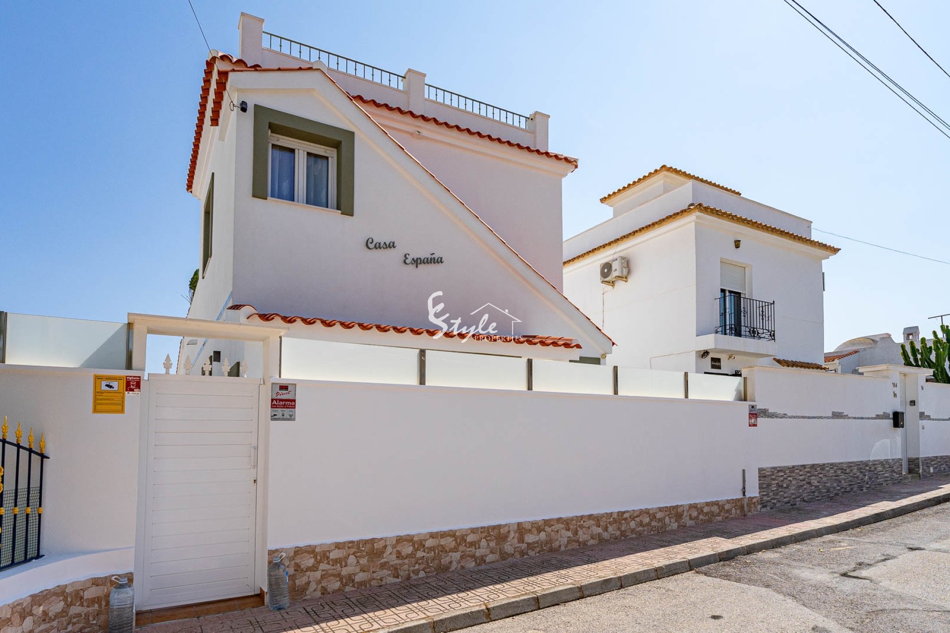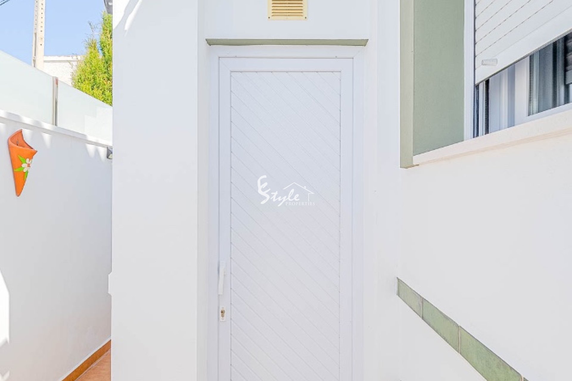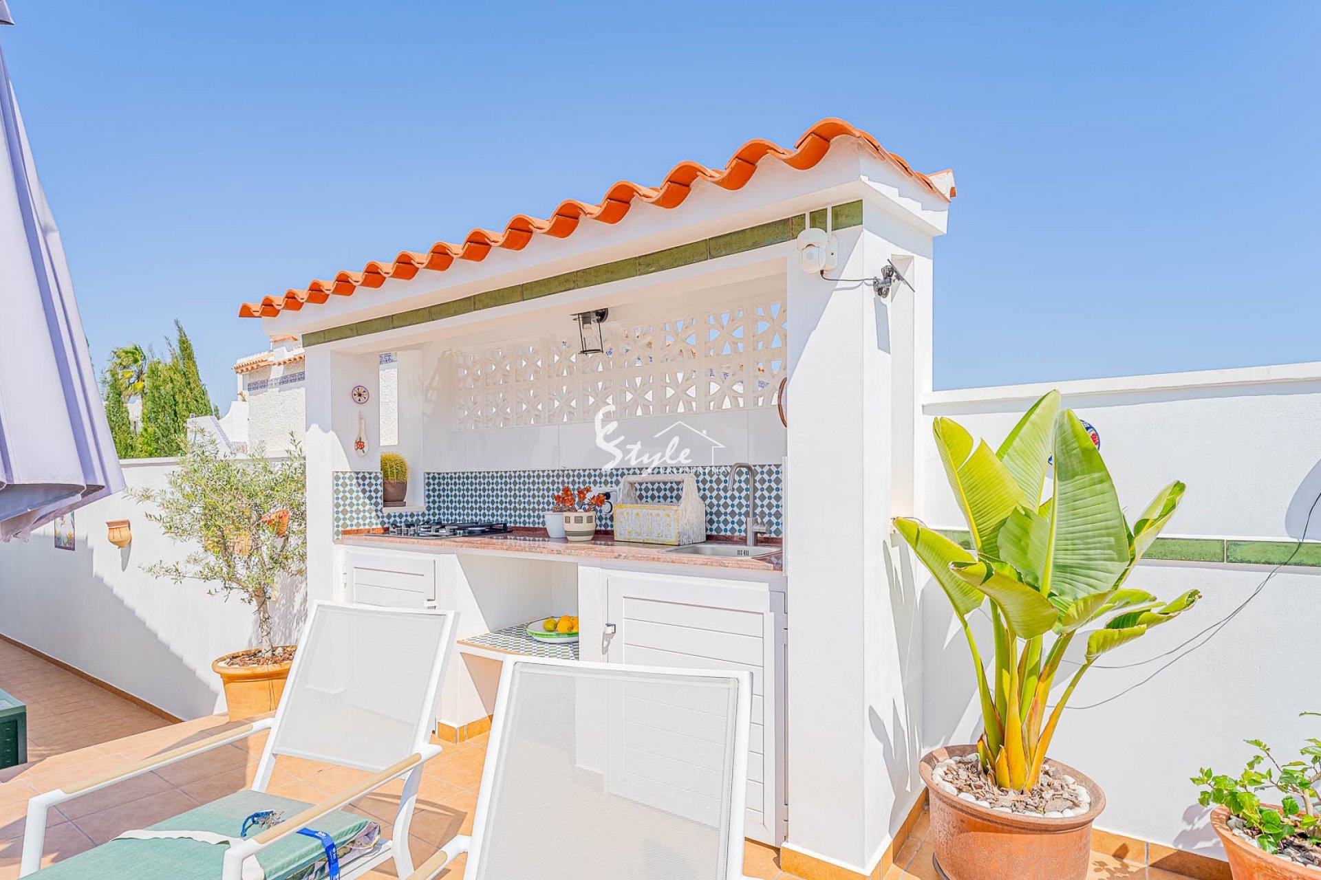 Located in a quiet residential area, this southwest-facing villa has two separate entrances. Only 4 km to the beachand 3 km to La Zenia Boulevard shopping center, with access to a community pool.