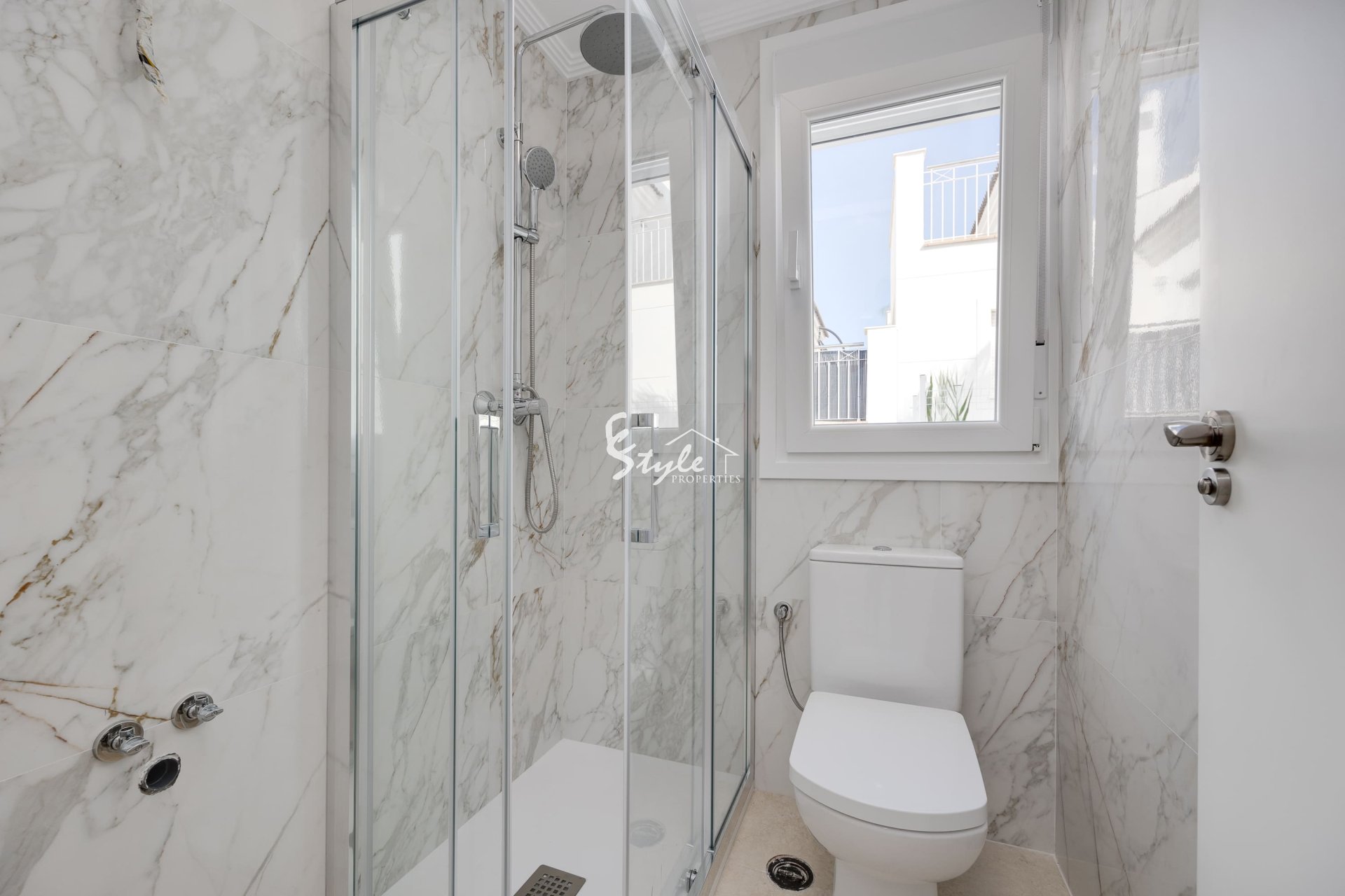 The exteriors of these independent homes in San Fulgencio are designed to maximize enjoyment of the Mediterranean climate. Each property features a private garden, perfect for creating a personal green space or enjoying outdoor activities. Additionally, the spacious terraces allow for full enjoyment of the views and surroundings, providing an ideal place to relax or entertain guests. The inclusion of a private solarium is a standout feature, offering additional space for sunbathing and enjoying panoramic views.
