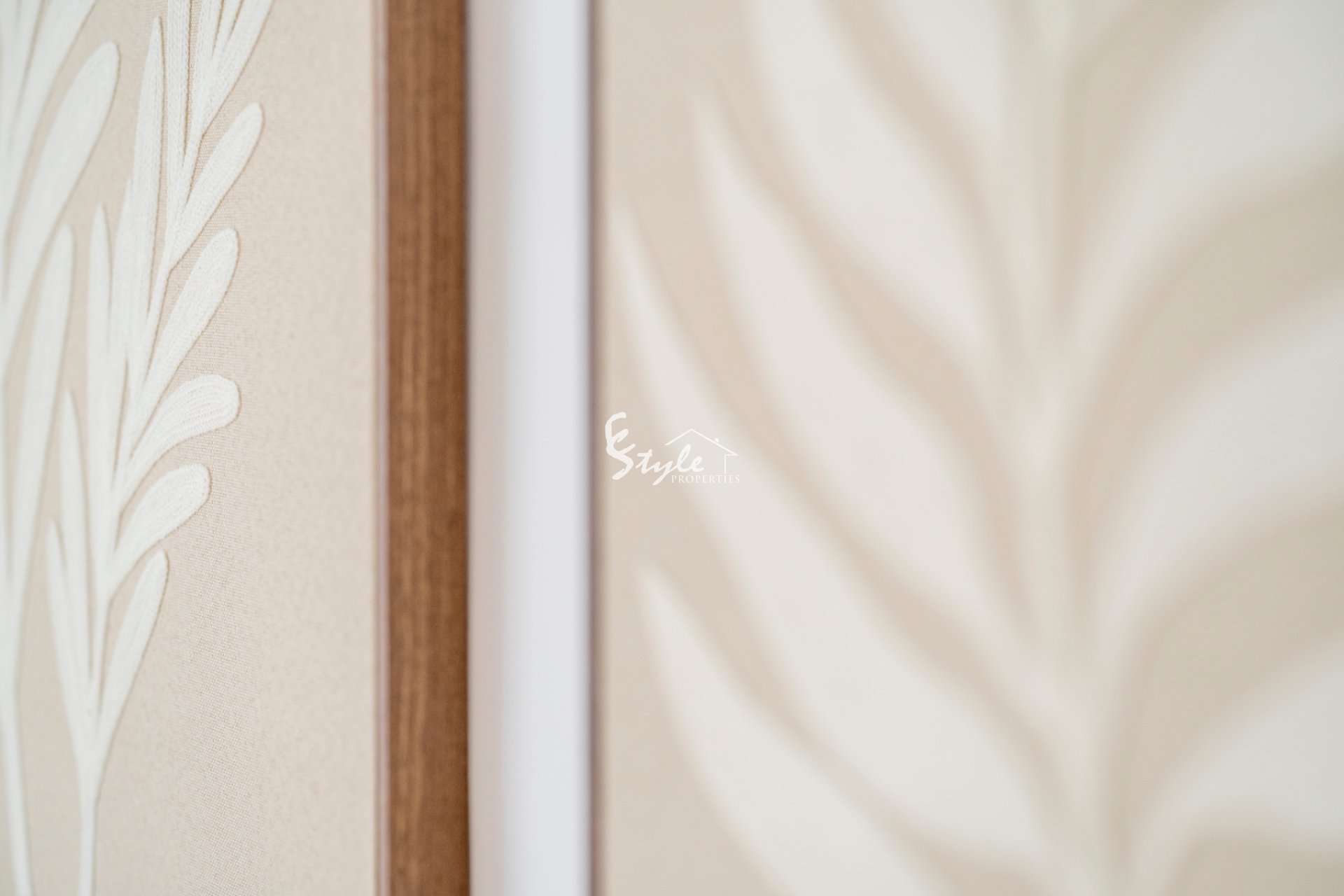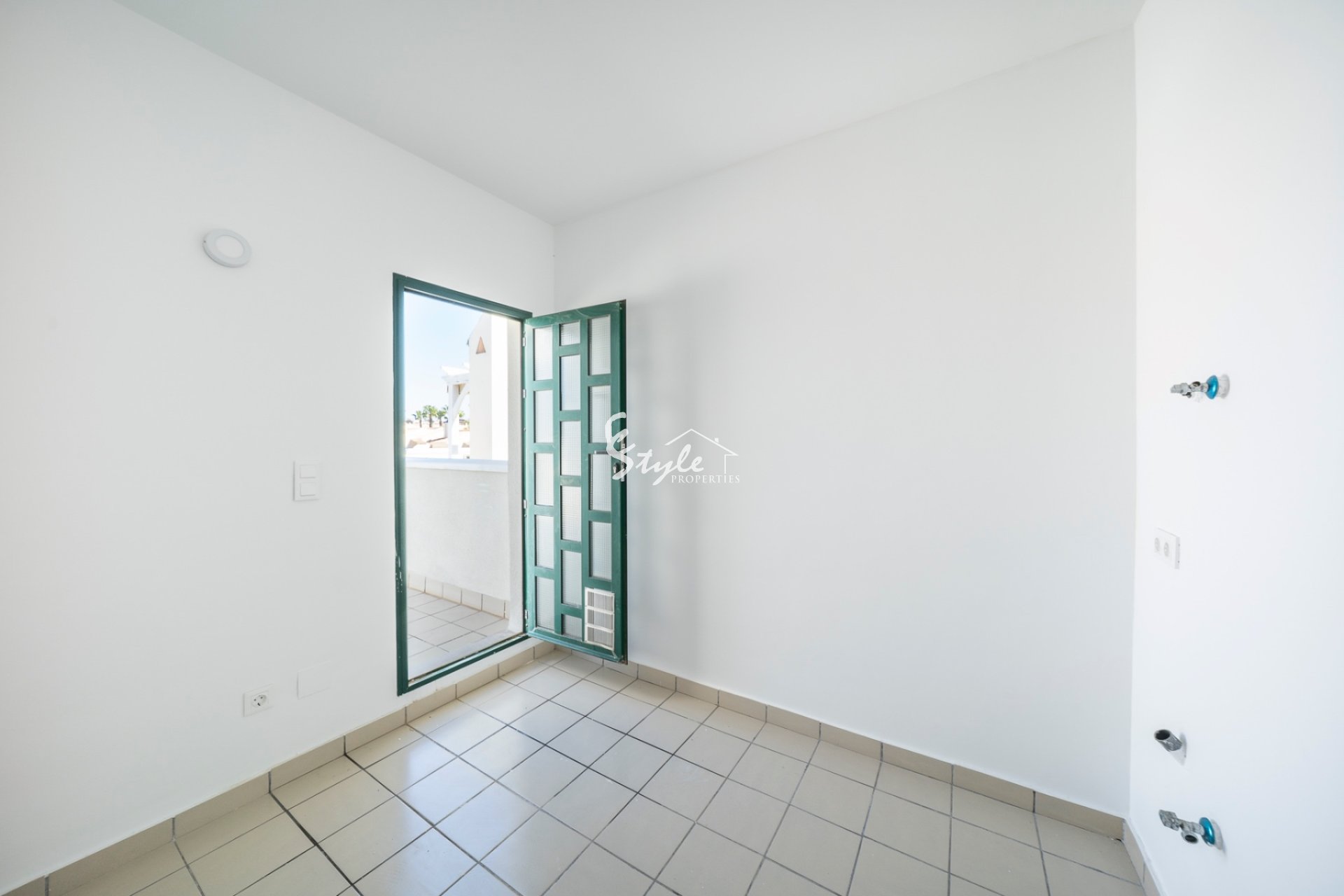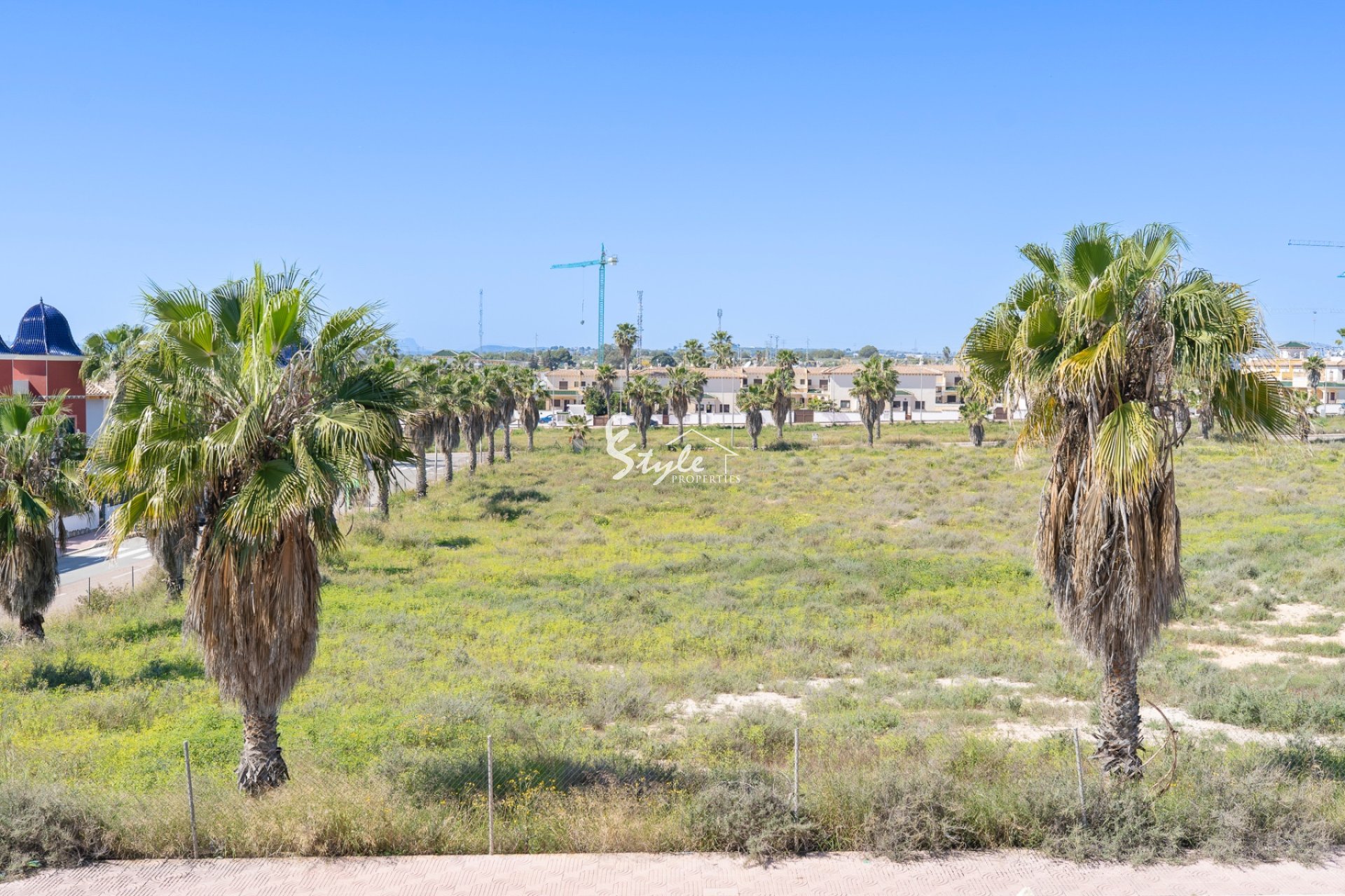 From the balcony, an external staircase leads to a large private roof terrace with a storage room and built-in BBQ, offering views of the salt lakes of Torrevieja and La Mata.