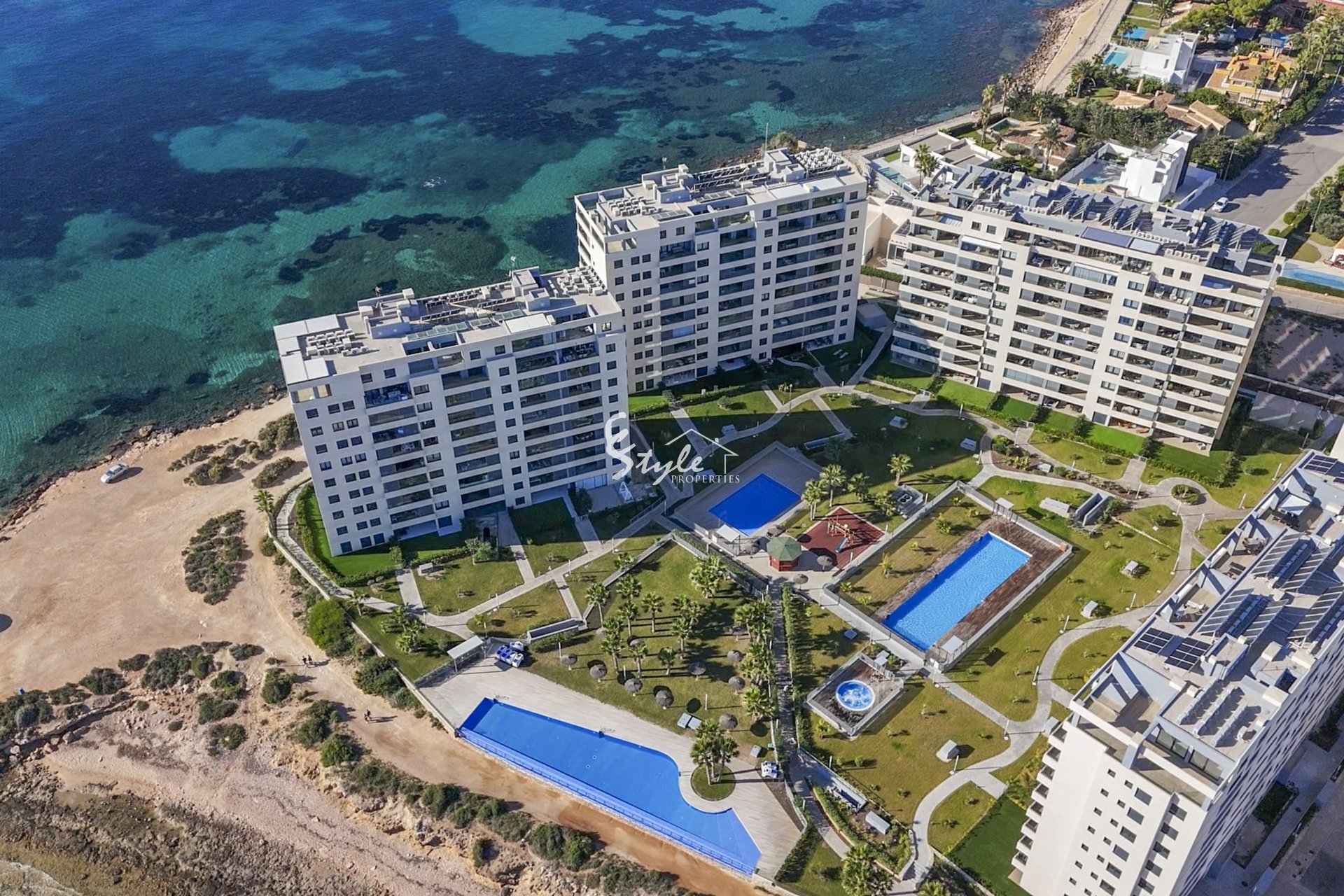 Brand new apartment in the exclusive Posidonia residential complex, located on the seafront in Punta Prima. It features 2 bedrooms, 2 bathrooms, and a 46 m² east-facing garden terrace. It has 127 m² built, an underground parking space, and a storage room.