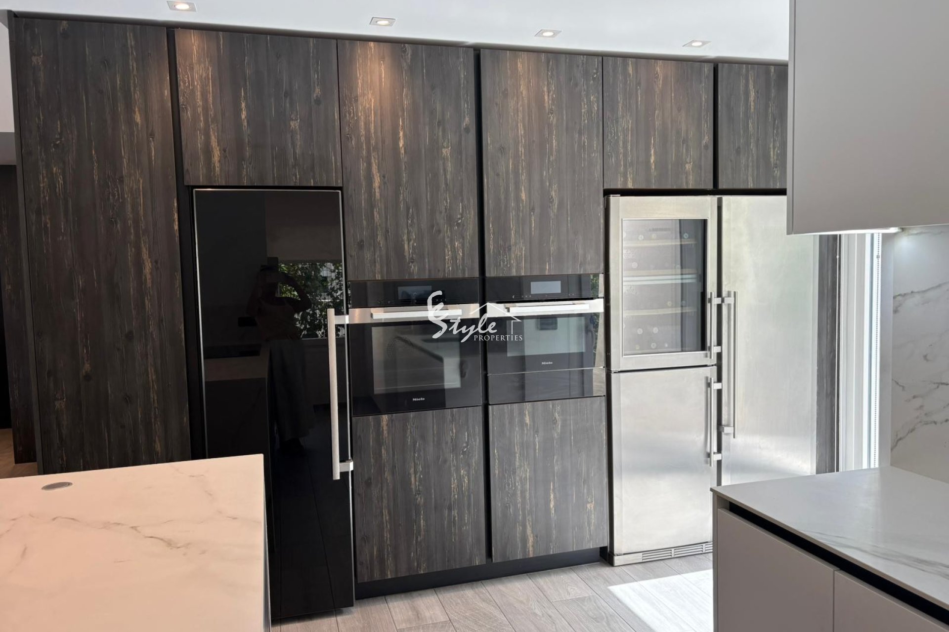The modern kitchen is fully equipped with high-end appliances from brands like Miele and Liebherr — a clear mark of quality.