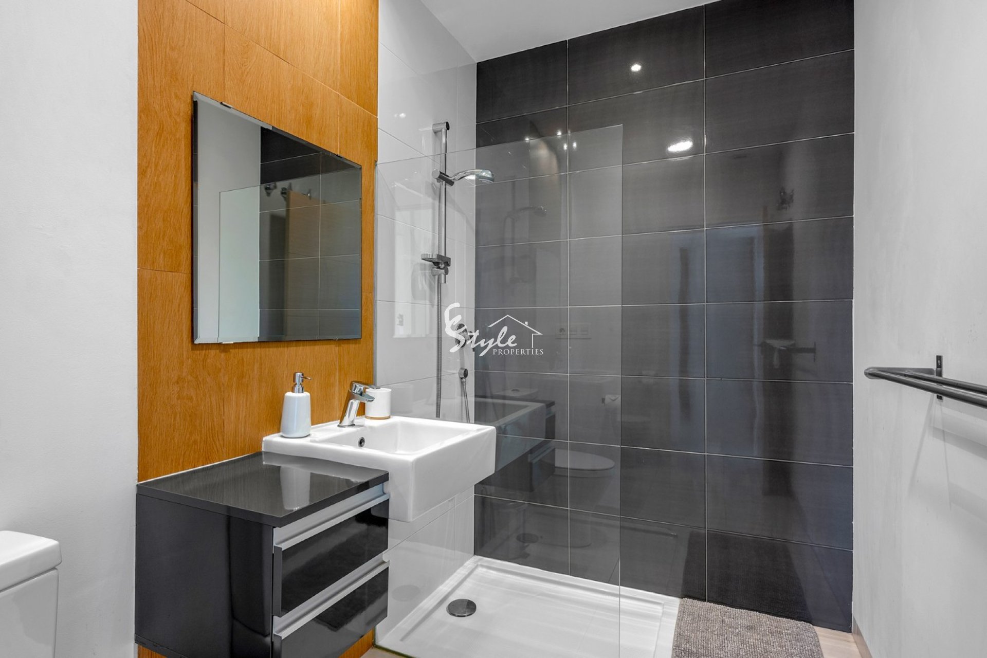 The apartment (66 m²) features two bedrooms and two bathrooms, one of which is en suite. The open-plan living area with integrated kitchen creates a modern and comfortable living space. From the living room, you access a cozy terrace, ideal for enjoying the Mediterranean climate.