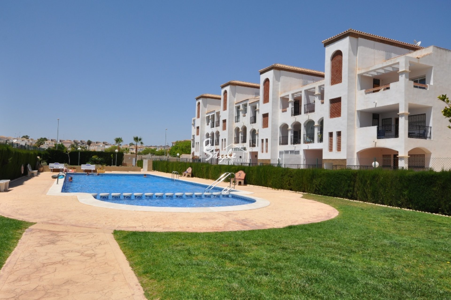 South facing ground floor apartment located inside the gated community. The property has 2 bedrooms, 1 bathroom, living room, separate kitchen with utility room and a large terrace overlooking the pool and park area. It will be sold furnished, also the price includes underground parking space and a storage room.