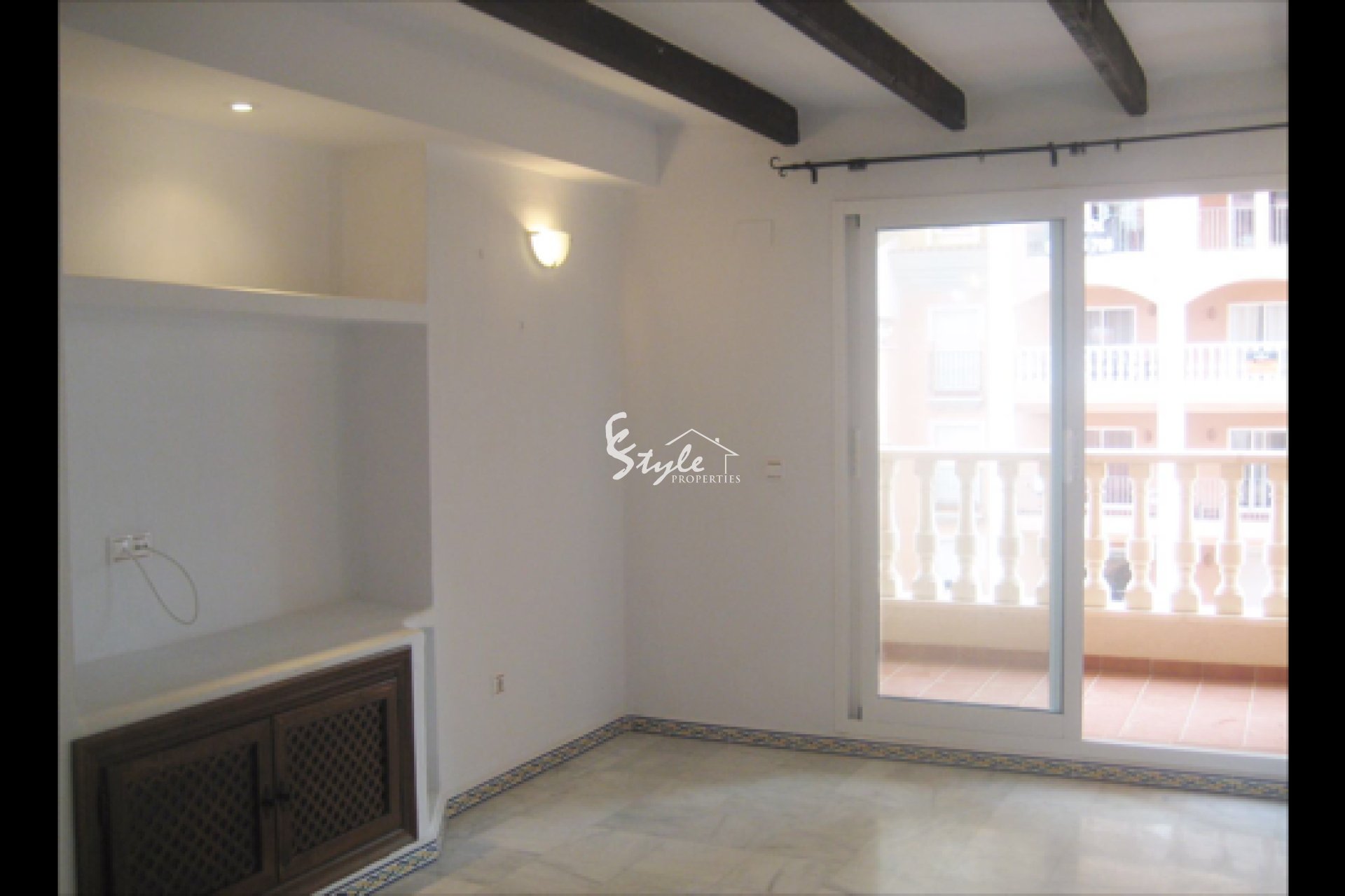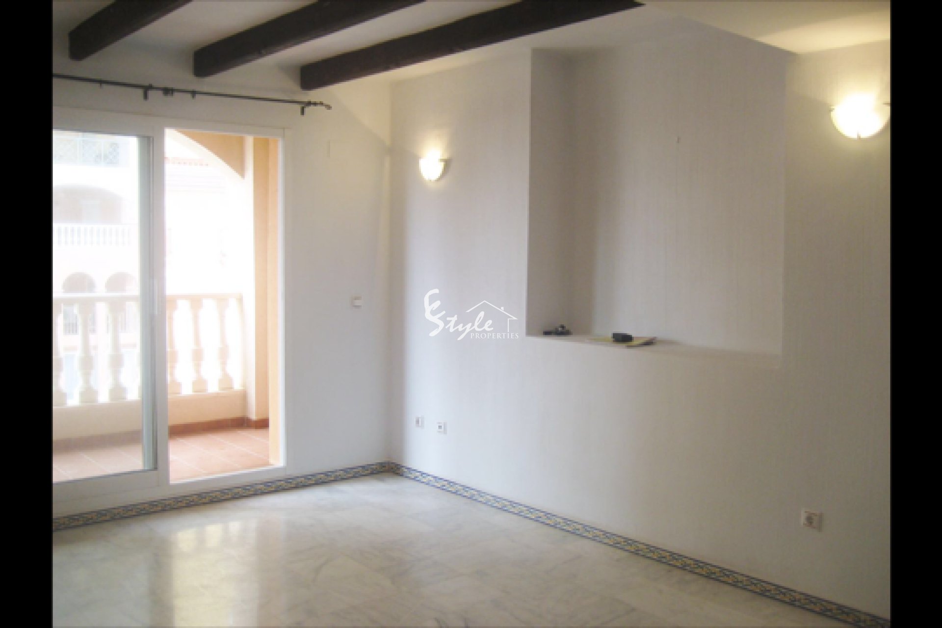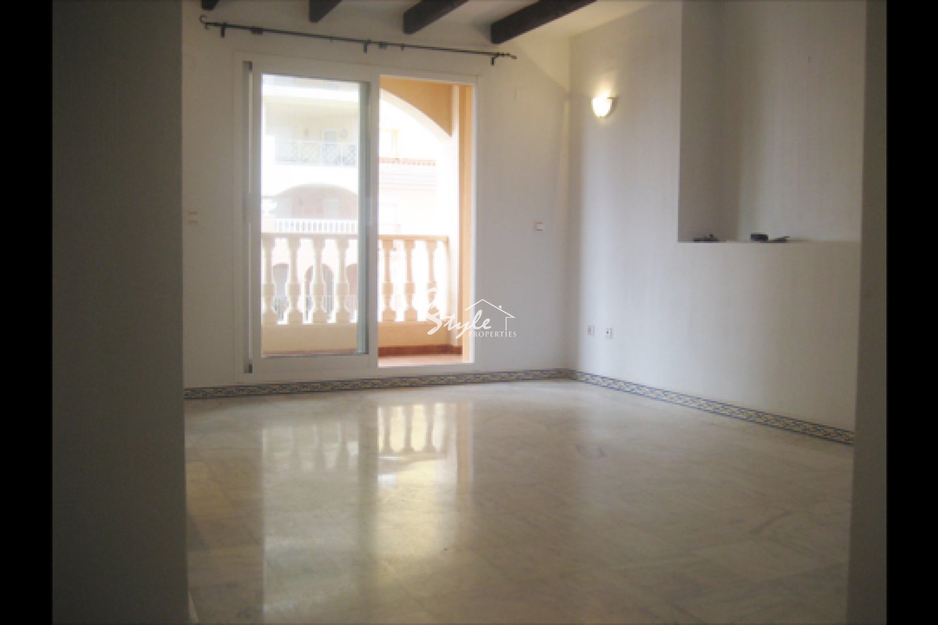 The apartment is 89m2 with 2 bedrooms, 2 bathrooms and a terrace. There is a very nice pool in the building. The apartment is sold unfurnished.