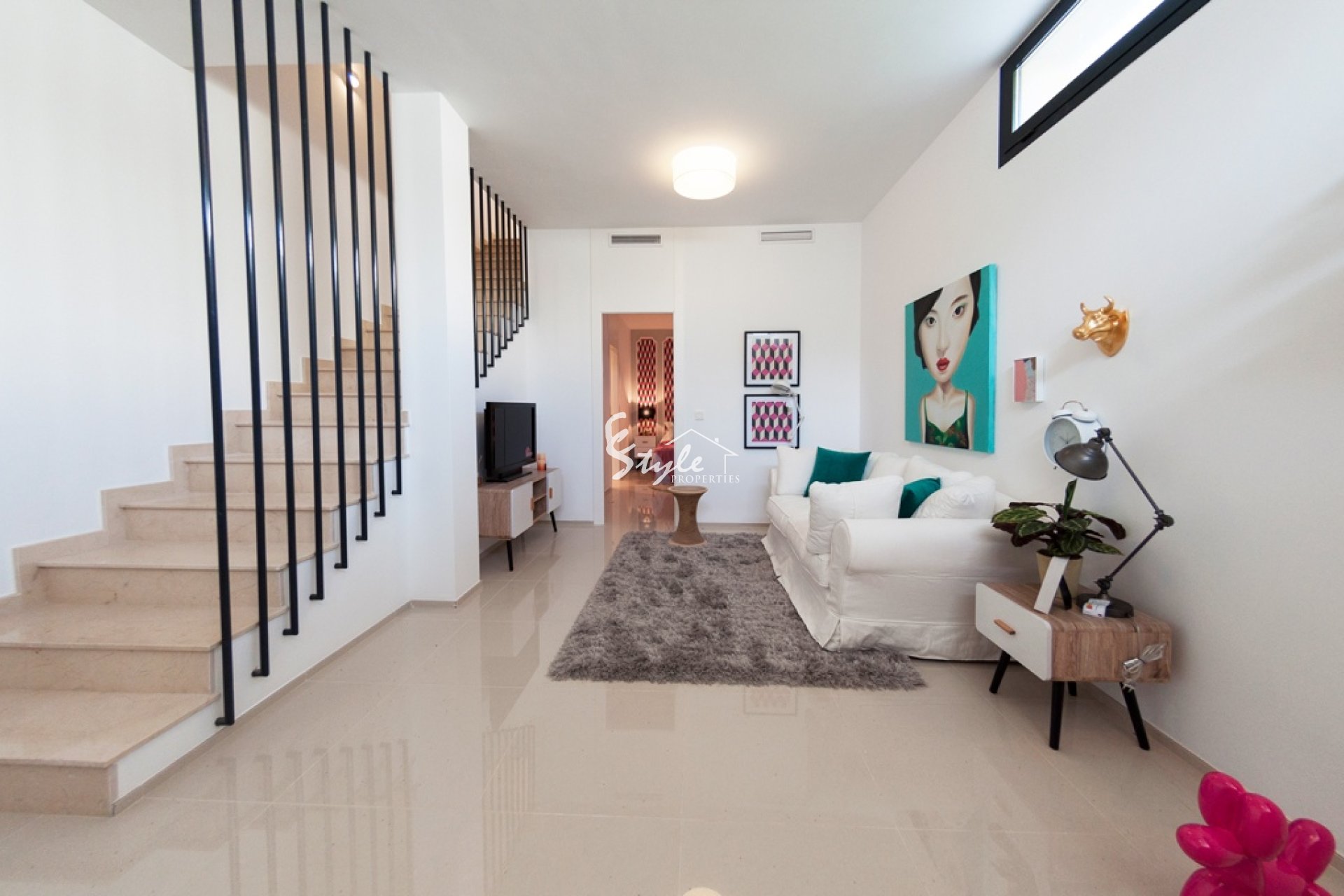 For sale new townhouse in a gated complex and large communal pool area. 5 bedrooms, 5 bathrooms, living area and kitchen, terrace, underbuild and a private solarium. All new build properties are overlooking the communal pool, have their private parking spaces and garden area as well.