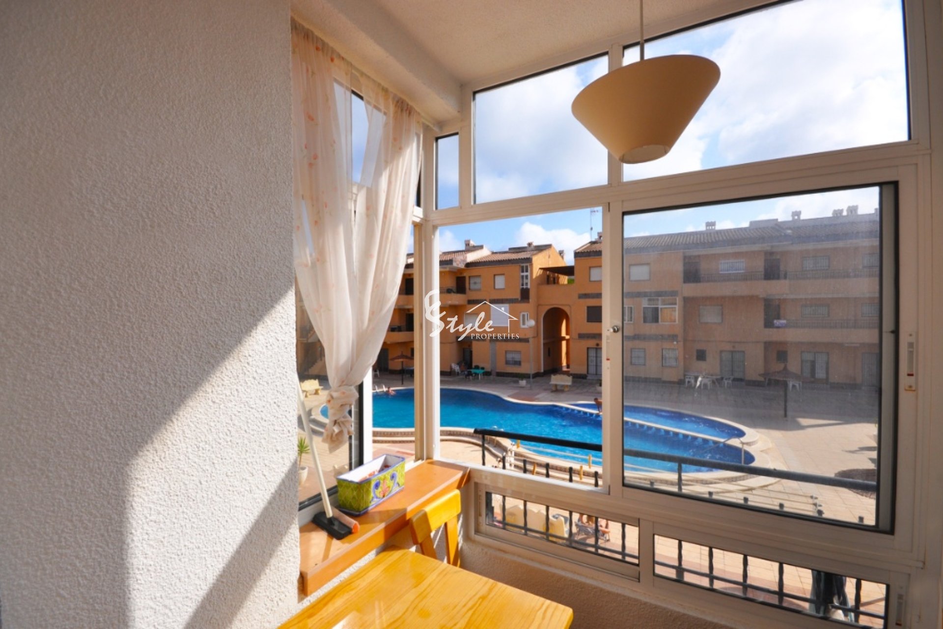 Beachside apartment located only few minutes walking distance to local amenities and the beach of Punta Prima. It has 1 double bedroom, living area with the kitchen and a south facing terrace which also overlooks the communal pool. The apartment will be sold furnished.