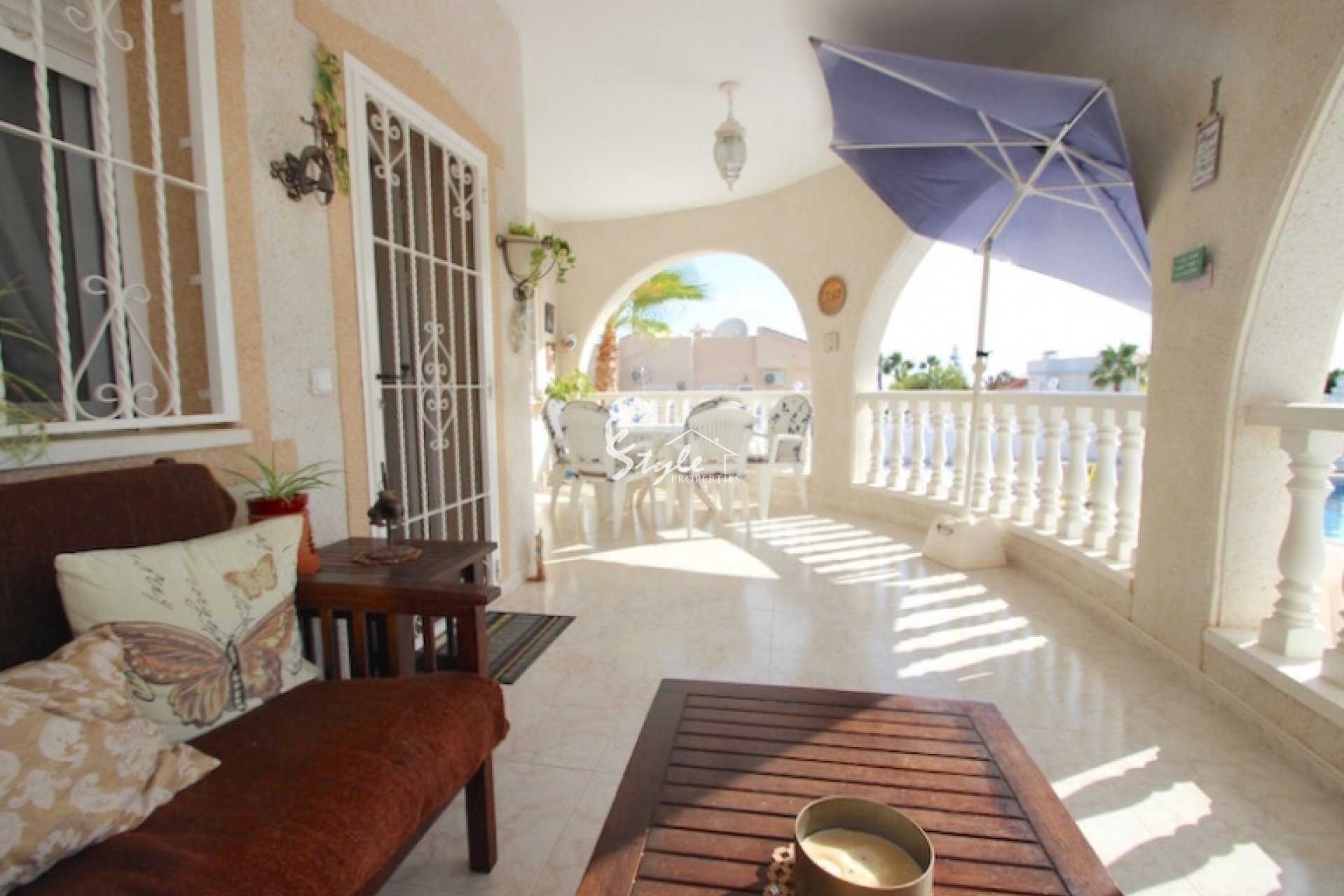 Villa with private pool in Ciudad Quesada, it has 3 bedrooms, 2 bathrooms, living room with fireplace, kitchen, storage room and roof terrace overlooking the surrounding area. Villa also has air conditioning, central heating and mosquito nets. Outside you will enjoy a spacious garden area with private pool.