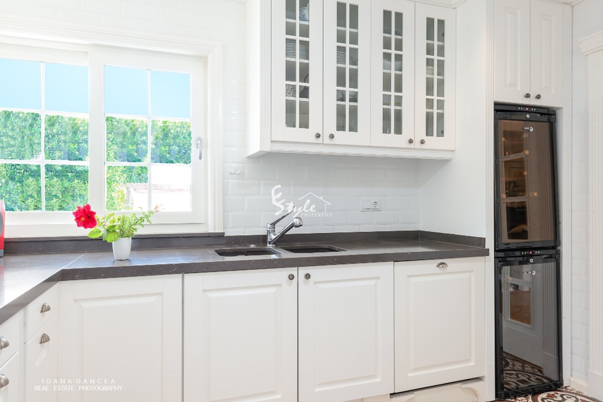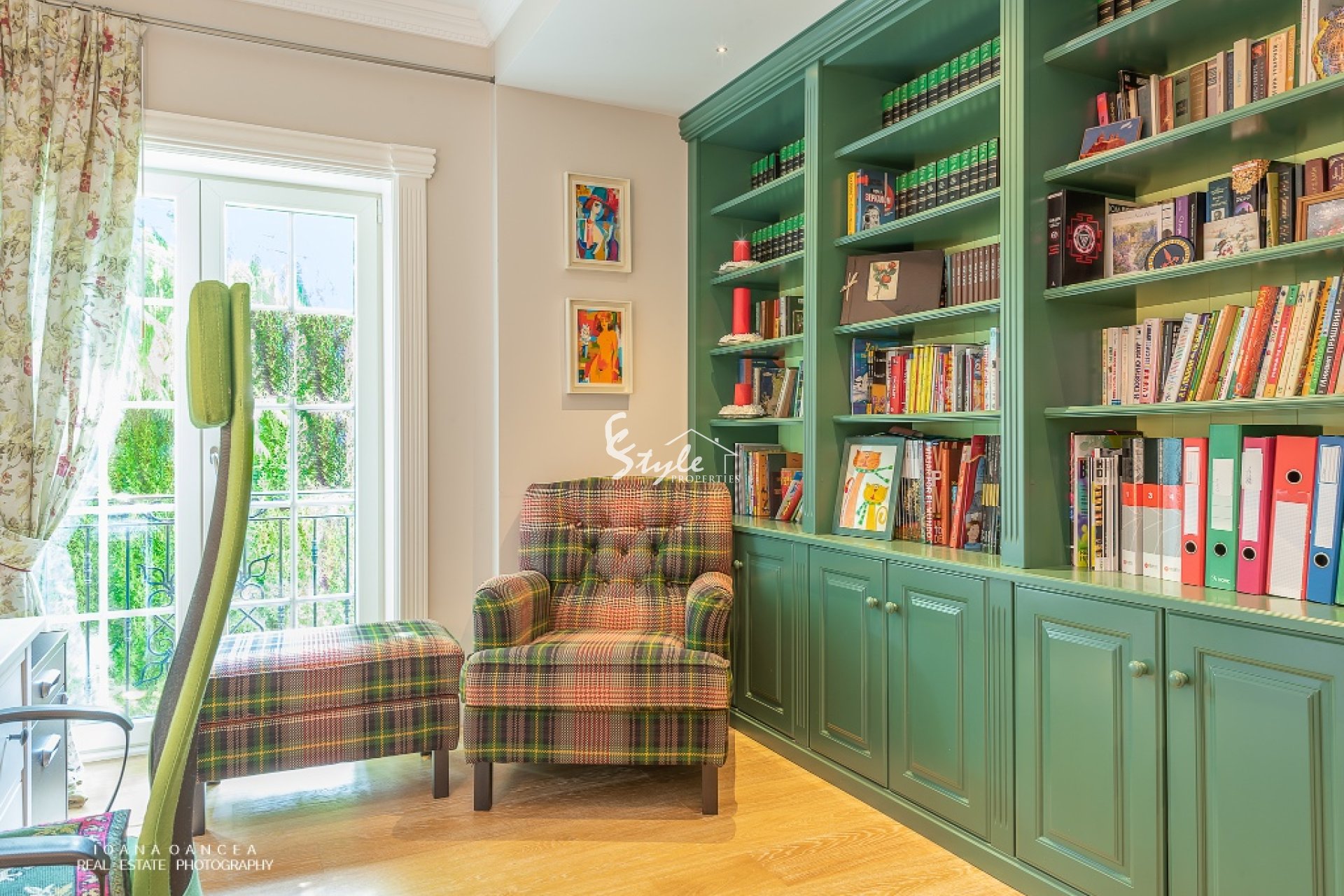 On the ground floor of this magnificent house there is a living room with dining area with fireplace, 2 en-suite bedrooms with walk-in closet each and a third bedroom converted in to a library. Also, on the ground floor there is a separate fully equipped kitchen with laundry room and a guest toilet.