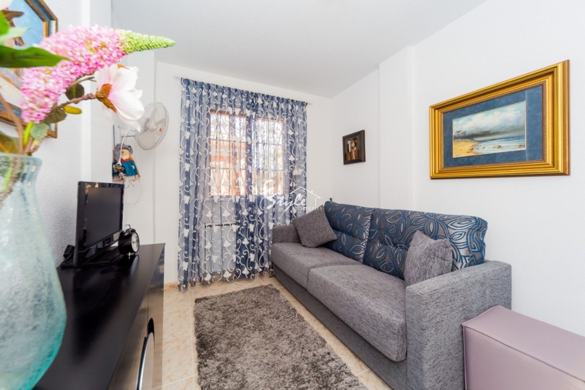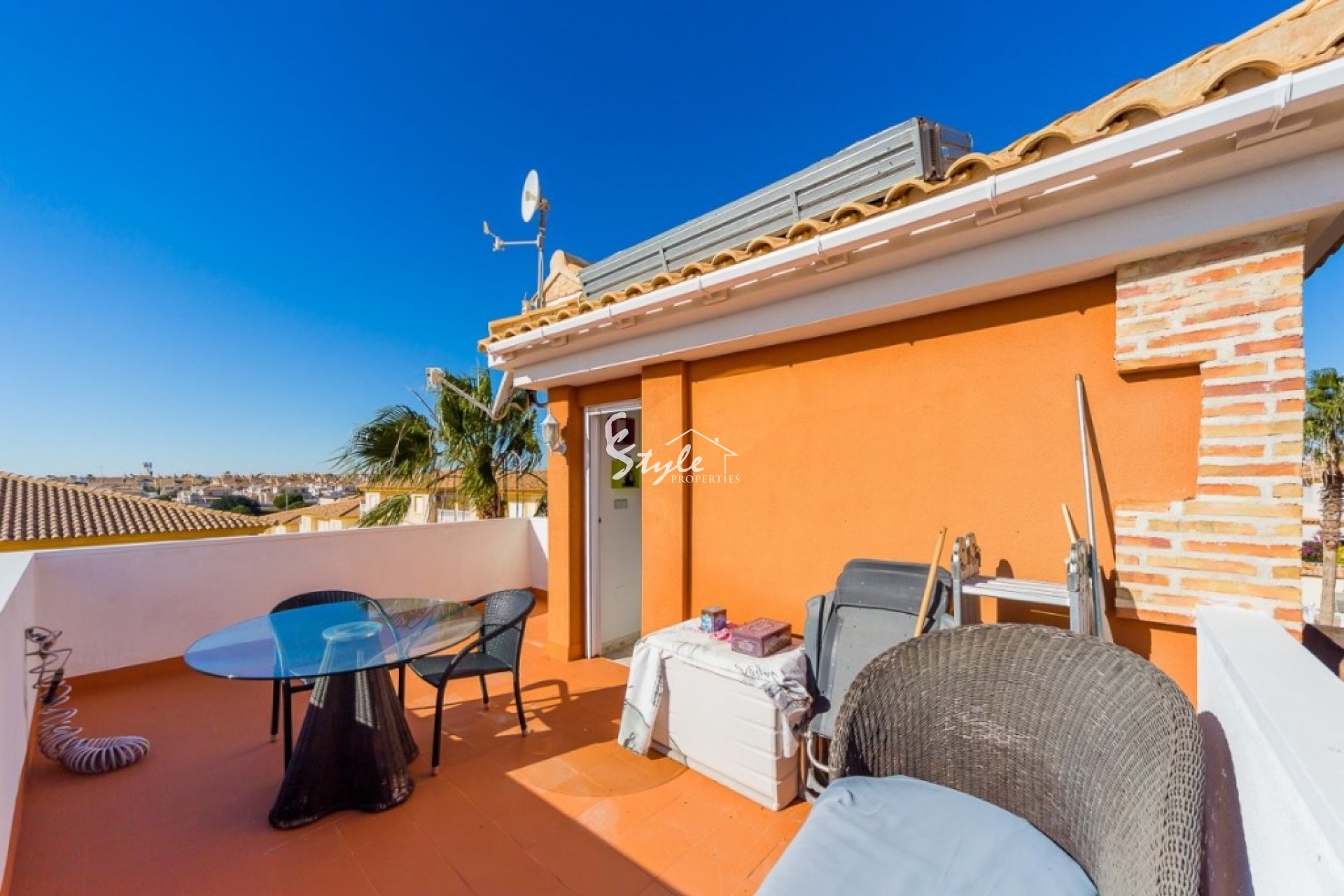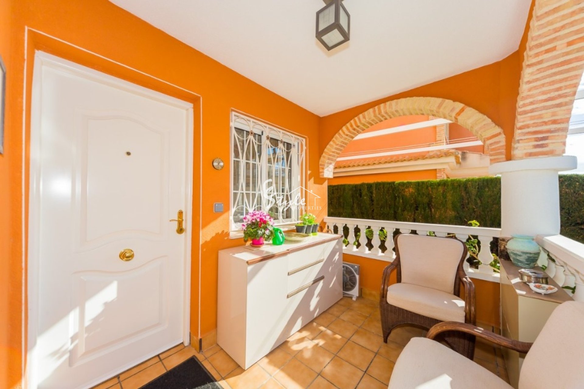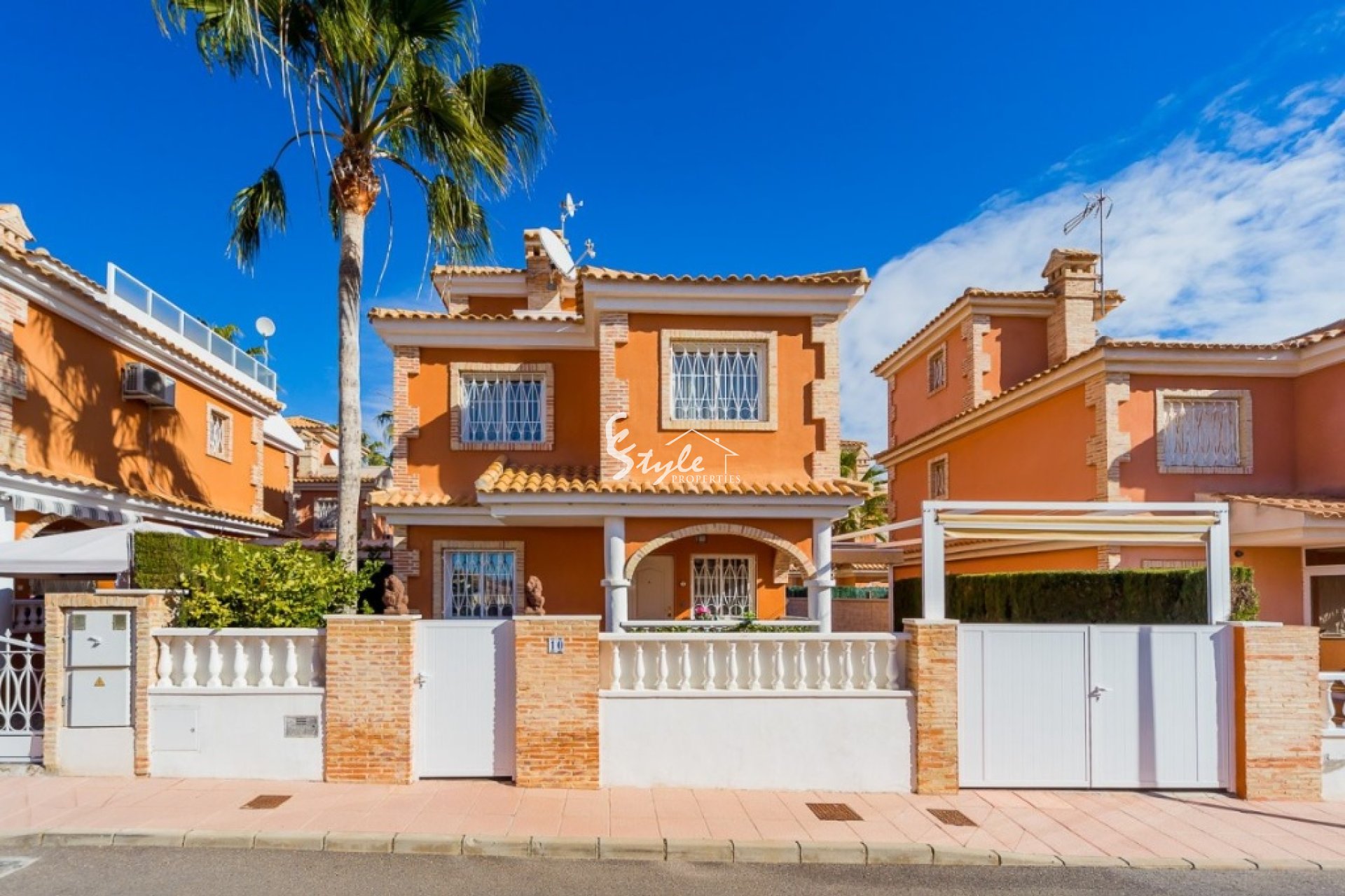 Villa like new of three floors with furniture and quality appliances. Built surface 111 m2, spacious living room with access to the porch, large kitchen with furniture and appliances, two bedrooms with wardrobes, the double with two areas adapted as a bedroom and as a small office and dressing room, two bathrooms, solarium, small plot with pool and parking. For sell furnished and with appliances, including air conditioning throughout the house. Ideal to live all year and spend holidays next to the beach. Cost effective seasonal rental.~~Beautiful villa in a classic style in a gated complex with two pools, 2004 year of construction. The little community fees.~~Quiet Playa Flamenca area near the huge CC "La Zenia, El Bulevard" with all services. Distance to the beach about 1.5 km.