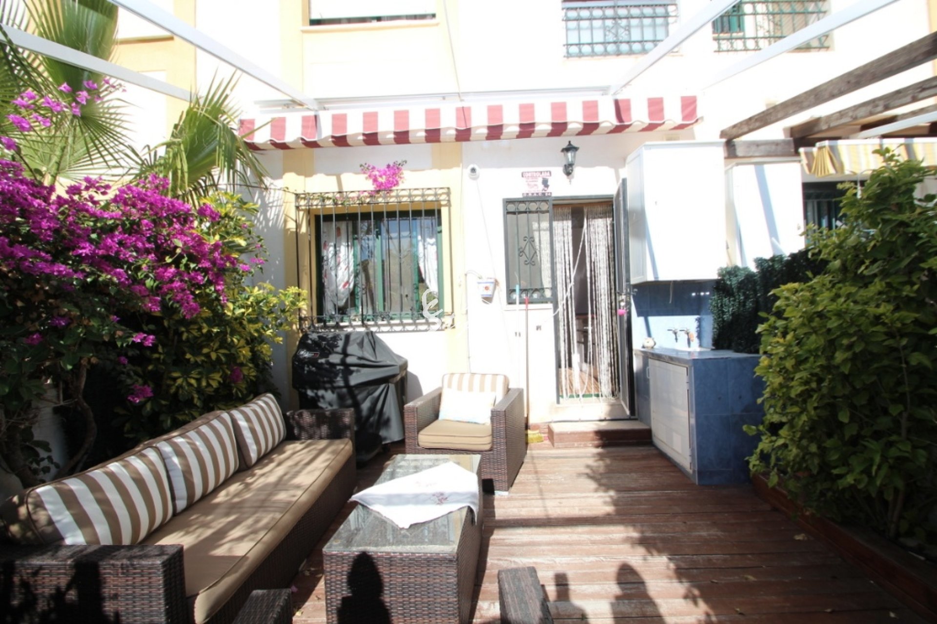 Townhouse by the sea in a closed urbanization with a swimming pool in La Zenia. The house has a courtyard for relaxation, 3 bedrooms, 2 bathrooms, a separate furnished kitchen with access to the patio, a spacious living room. Urbanization is located in the heart of the infrastructure, just 400 meters from the sea and the spacious beaches of La Zenia and 1 km from the large shopping center Zenia Boulevard.