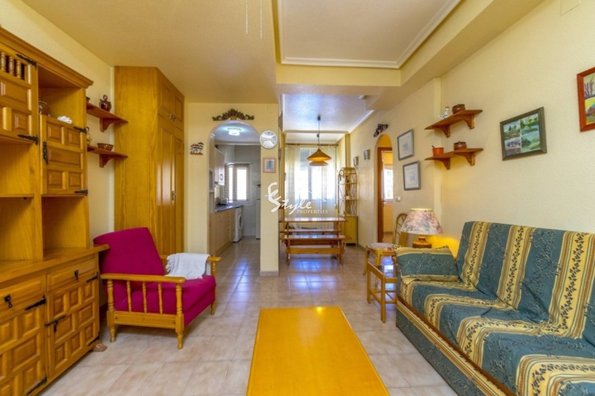Cozy south facing apartment for sale just 200 meters from the sea in the urbanization of Punta Prima. The apartment has 2 bedrooms with fitted wardrobes, 1 bathroom, furnished kitchen, a bright living-dining room and a sun terrace. Closed urbanization has a swimming pool and parking spaces on site. Shops and restaurants are just 5 minutes away, as are the two beaches of Punta Prima.