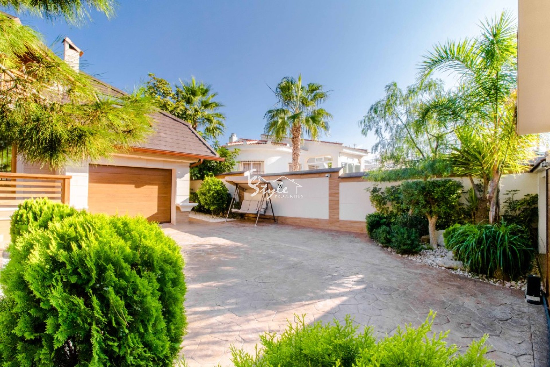 We have for sale an independent two-storey villa with its own plot, very comfortable for summer vacations or to enjoy the climate and Mediterranean sea all year round. It is located in urb. Ciudad Quesada, in less than 10 minutes by car from wonderful beaches. This impressive house has three bedrooms, two bathrooms, large living room with open kitchen and access to the terrace with magnificent views on the ground floor and another living room with fireplace and beautiful terrace on the first floor. The property has a private pool, green areas with barbecue and a children's playground. The house has a garage inside the house with storage. House is sold fully furnished.